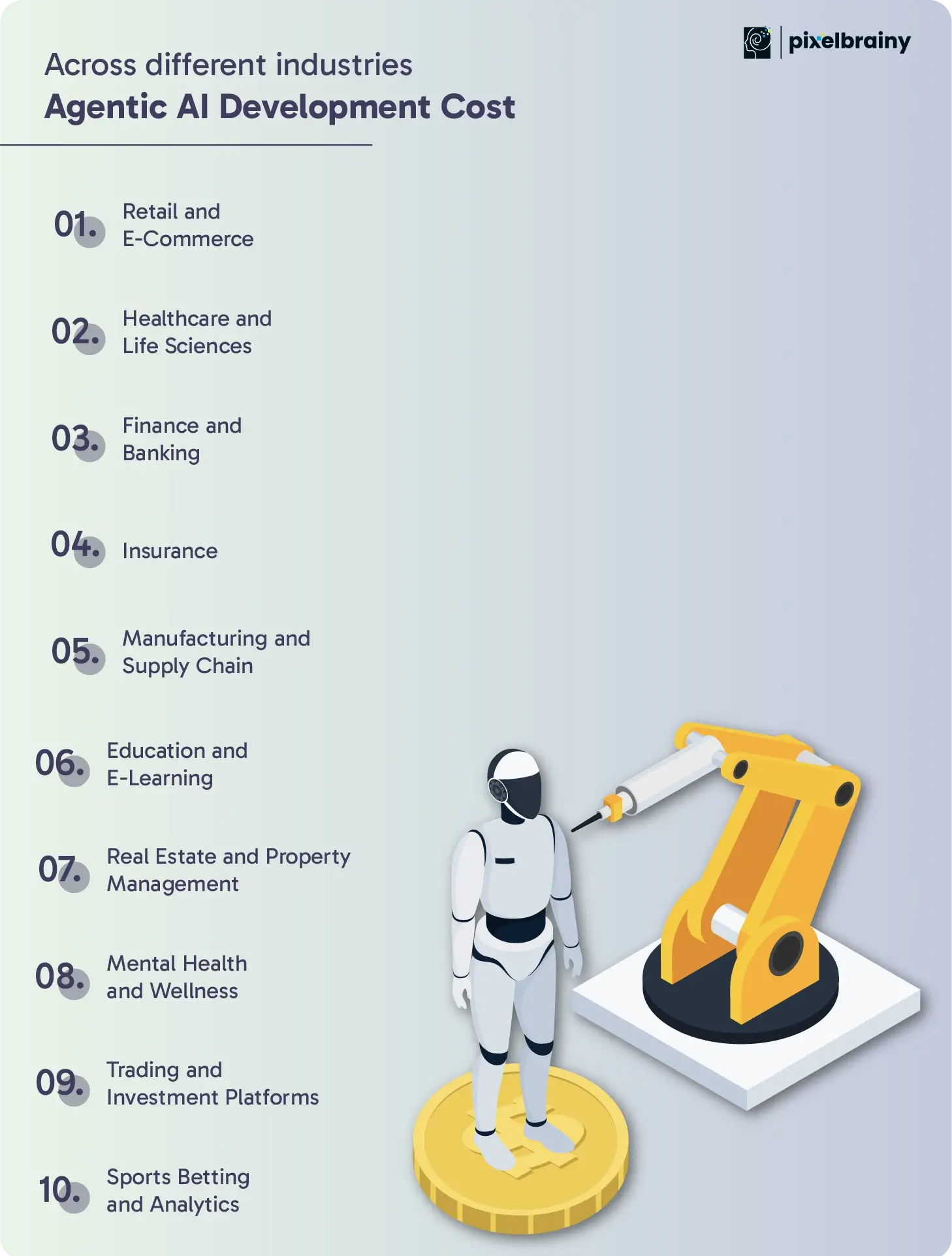 As we talk about how Agentic AI is transforming industries, it becomes clear that the cost to develop Agentic AI differs based on data sensitivity, regulation, and operational complexity. Each sector has unique goals, tools, and customer interactions, which influence both the development timeline and total budget.