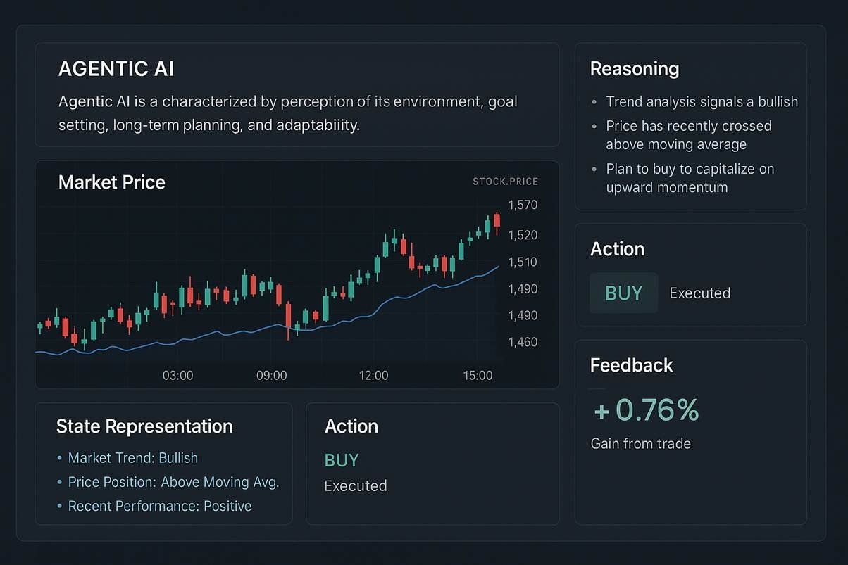 Agentic AI goes beyond rule-based bots by autonomously learning from real-time market conditions, adapting strategies, and making decisions without manual intervention. It’s designed to think, plan, and execute like a human trader — but faster and more accurately.