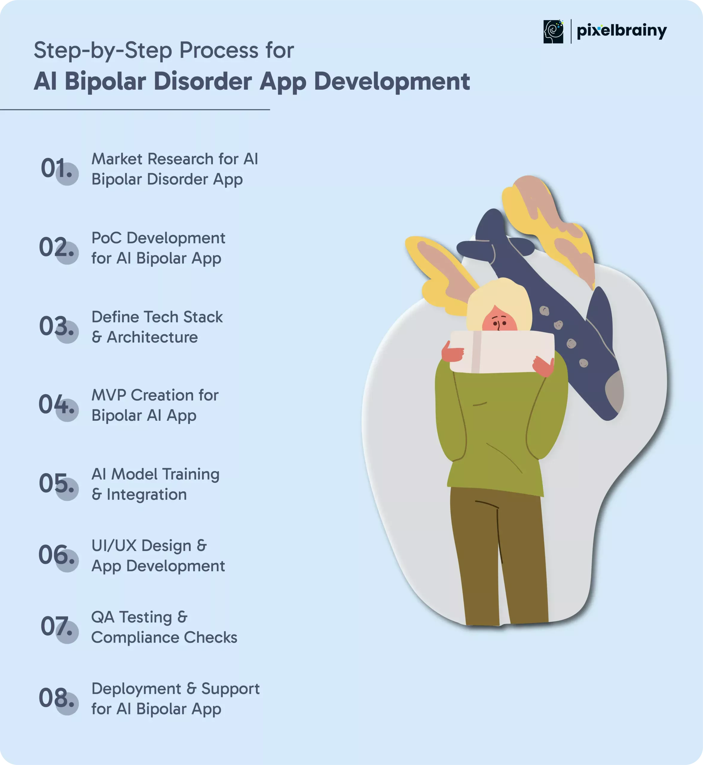 So, are you ready to deliver a truly intelligent and human-centric bipolar disorder solution? Partner with PixelBrainy, a premier AI app development company trusted for building ethical, secure, and scalable healthcare AI systems.