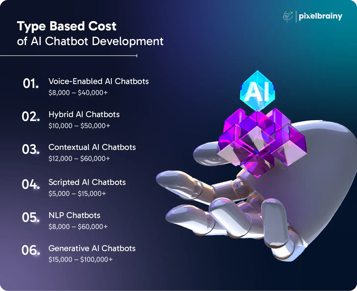 AI chatbots come in various types, each offering unique features tailored to specific business needs. Understanding the different AI chatbot types and their associated costs is crucial for choosing the right solution based on your budget and requirements.