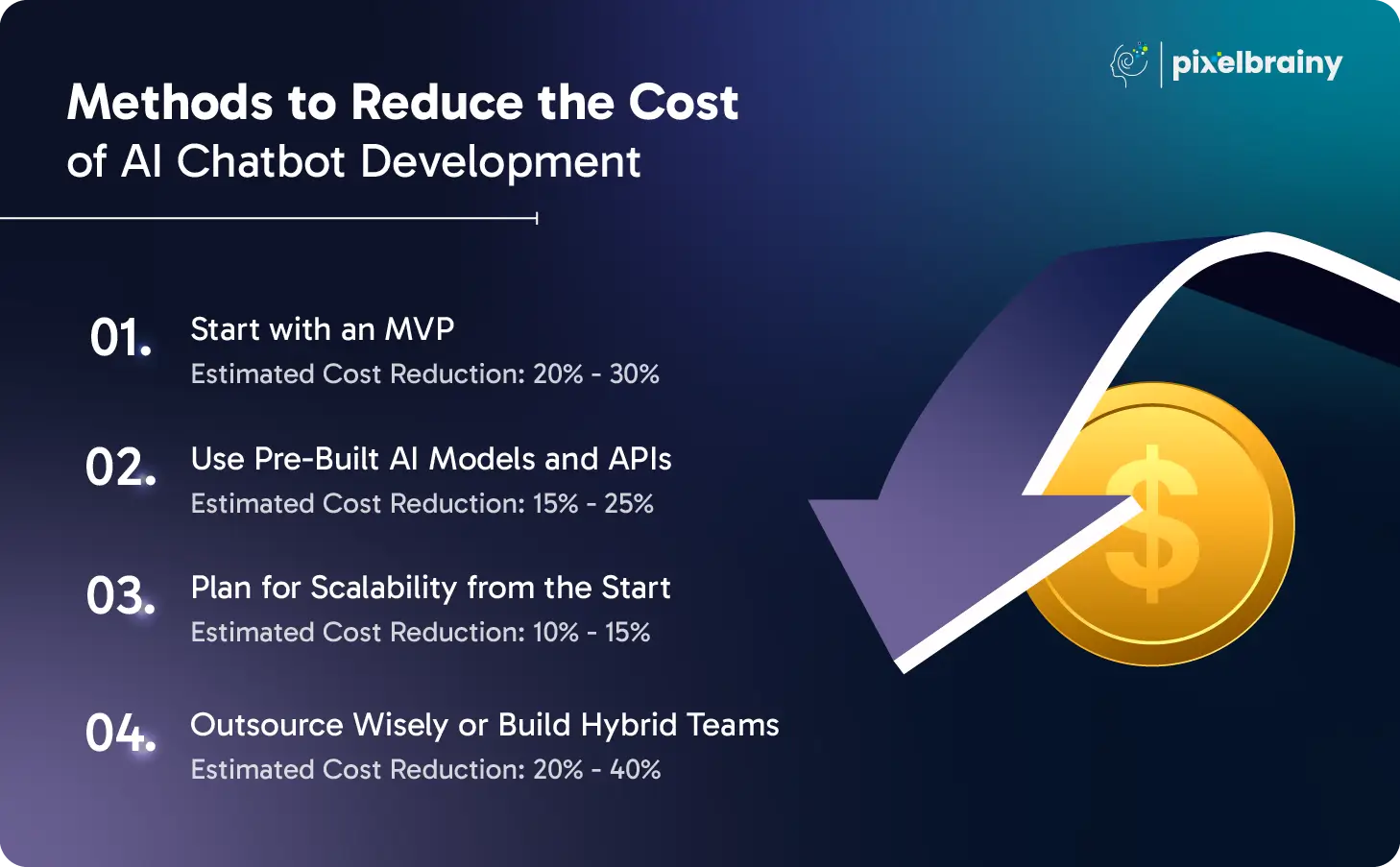 Here are verified strategies to lower the cost to build a chatbot while still providing a high-quality solution: