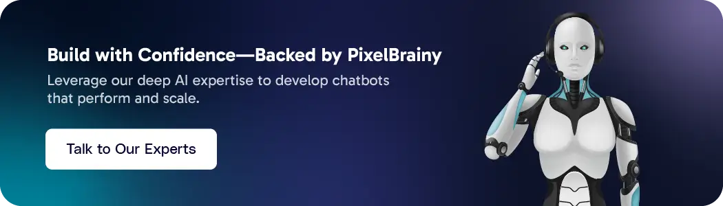 Ready to take the leap and revolutionize your business? Start your AI chatbot journey with PixelBrainy, which proposes affordable chatbot development costs!