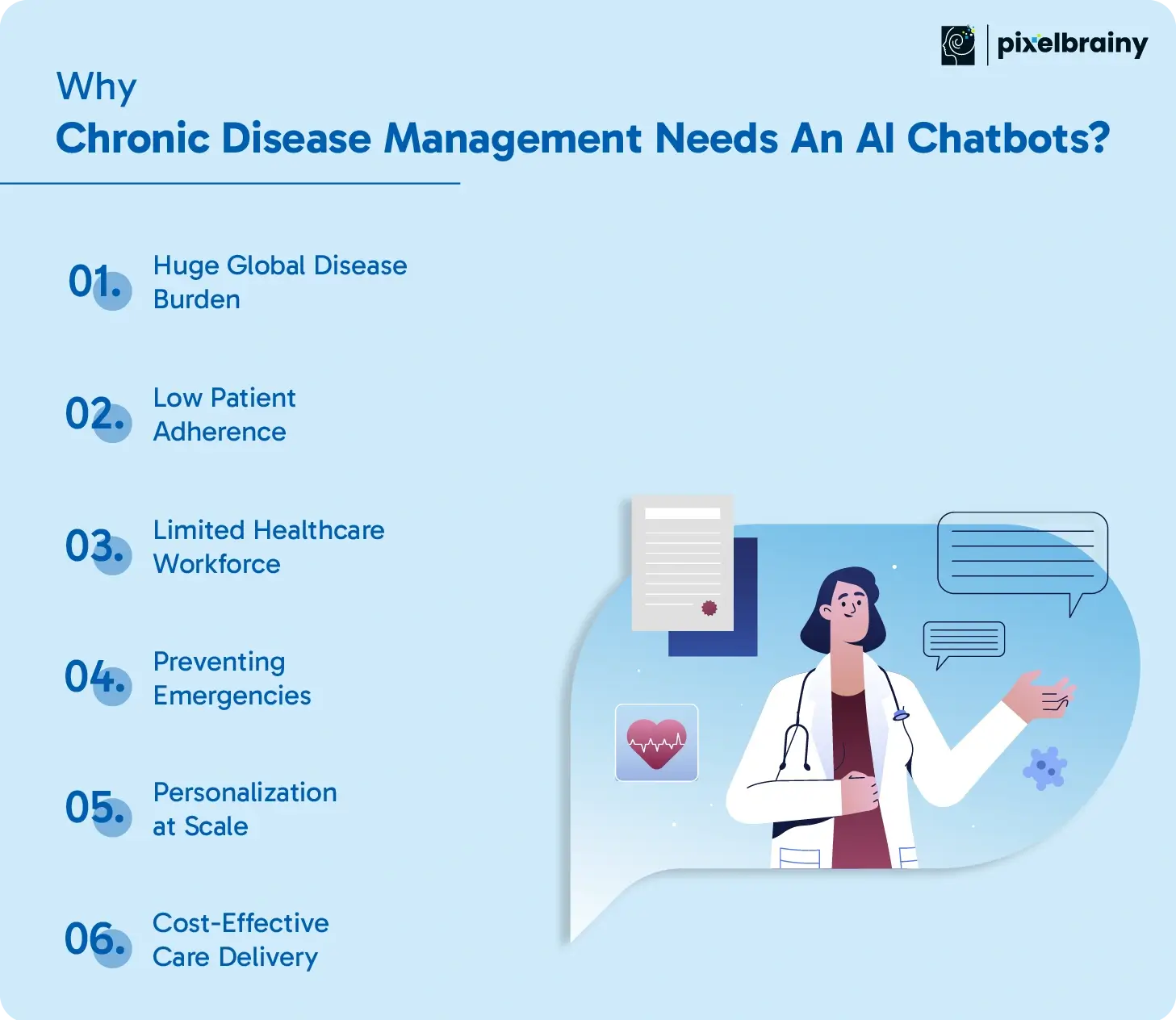 Below are the key reasons why healthcare providers, clinics, telemedicine companies and startups should consider initiating projects to make AI Chatbot for Chronic Disease Management.