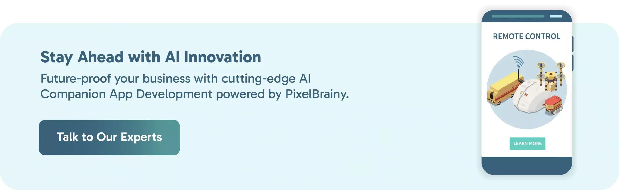 With PixelBrainy as your trusted AI app development company in USA, you gain a partner who understands both the technology and the user experience needed to build an AI Companion App that stands out in a competitive market.