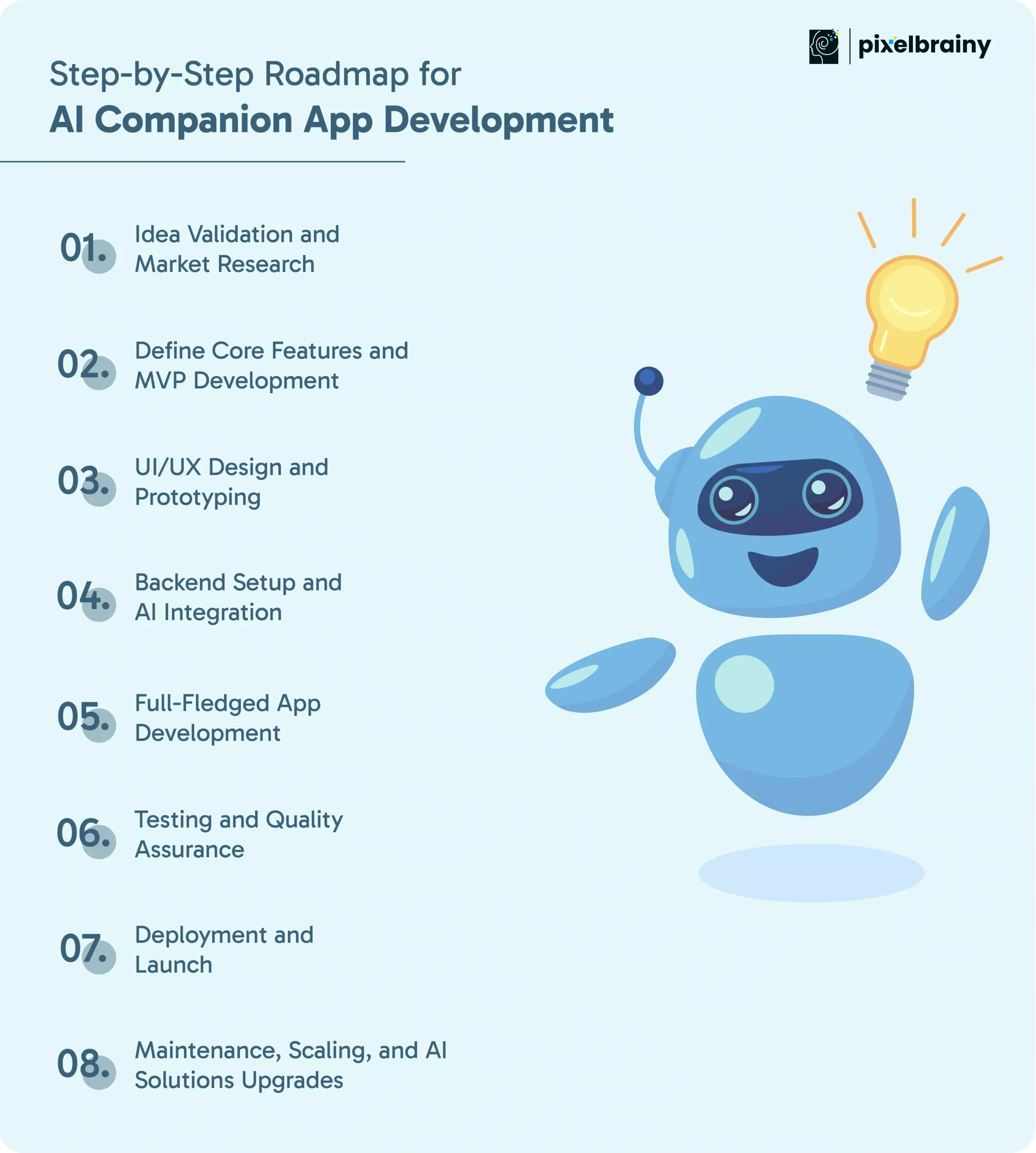 By following this roadmap, businesses can transform an idea into a scalable AI Companion App, moving from MVP to a full-fledged product while continuously adapting to user needs.