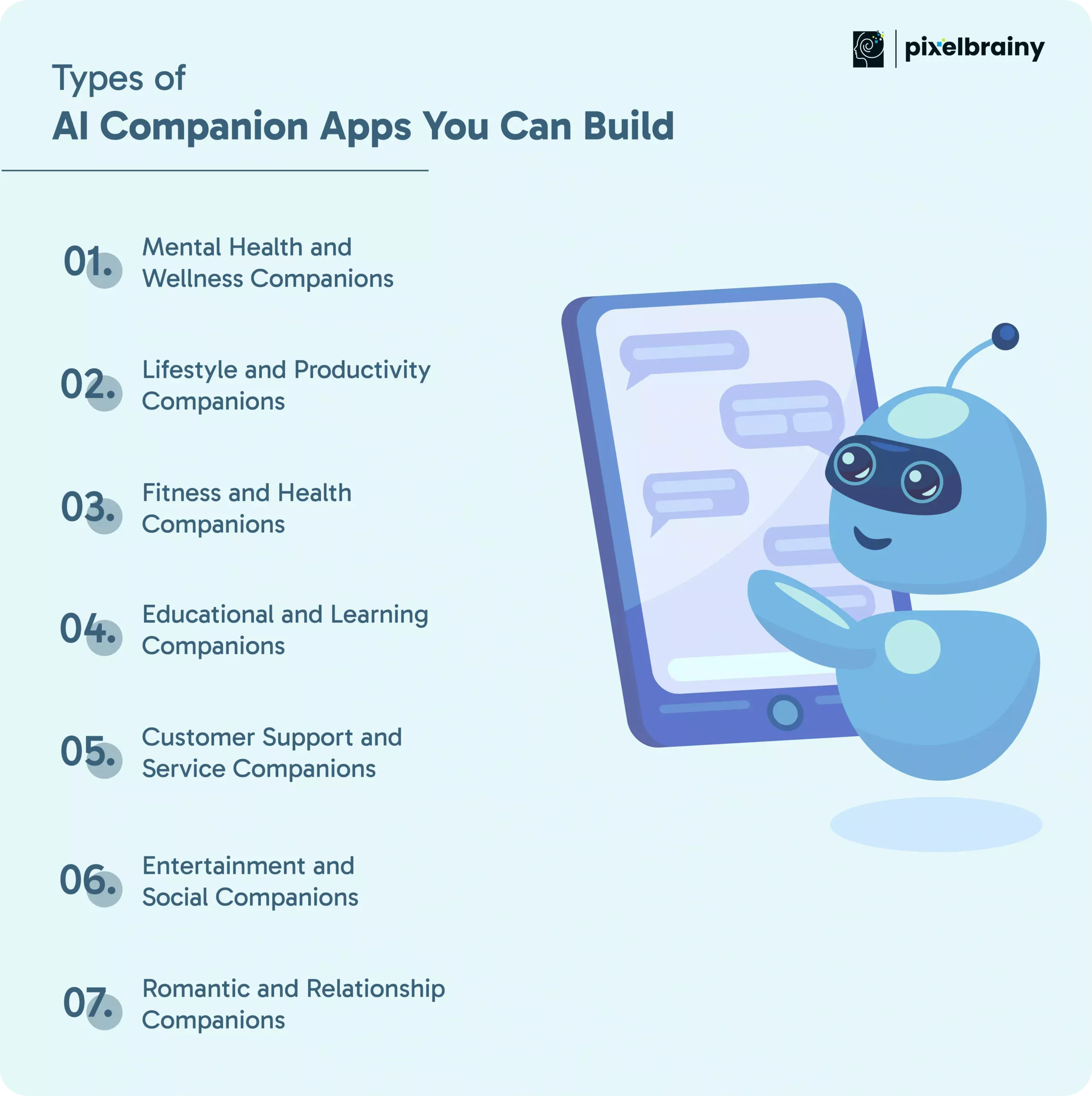 By understanding the most popular types of AI Companion Apps, businesses and startups can identify the right direction for their projects and tap into markets with high growth potential. Below are seven categories that highlight the diversity and scalability of this technology, each supported with real-world examples.
