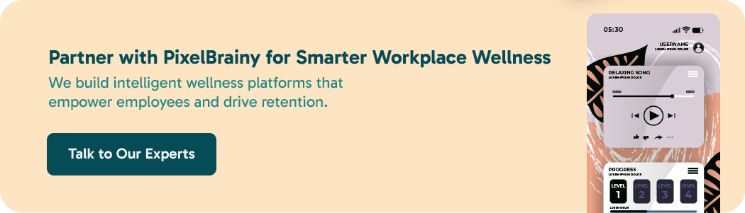 PixelBrainy, an enterprise-grade AI wellness app development company, specializes in building AI-powered platforms for global companies looking to improve workplace wellbeing with scalable, intelligent, and secure solutions. Whether you are an emerging startup or an established enterprise, our custom AI employee wellness app development services support physical fitness, mental health, and emotional resilience, all aligned with your business pursuits. From developing AI employee mental health solutions to creating fully integrated corporate wellness apps with AI features, we turn complicated requirements into high-impact wellness tools.