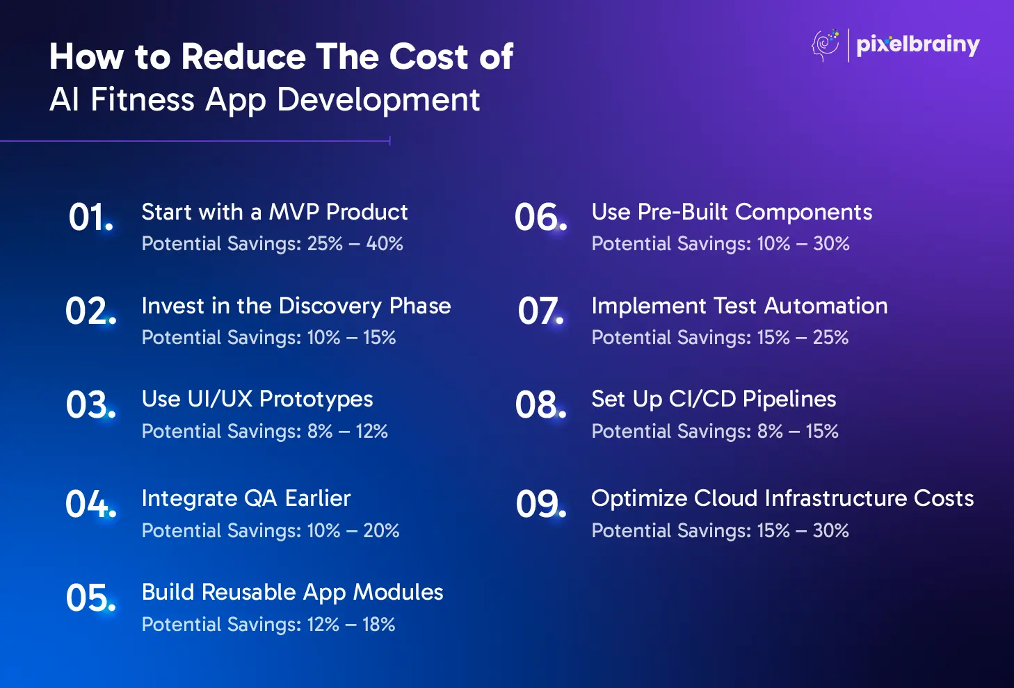 Building an AI fitness app can be costly, especially with features like personalization and real-time tracking. But with thoughtful planning and cost-effective strategies, businesses can reduce expenses without compromising a high-quality, scalable app.