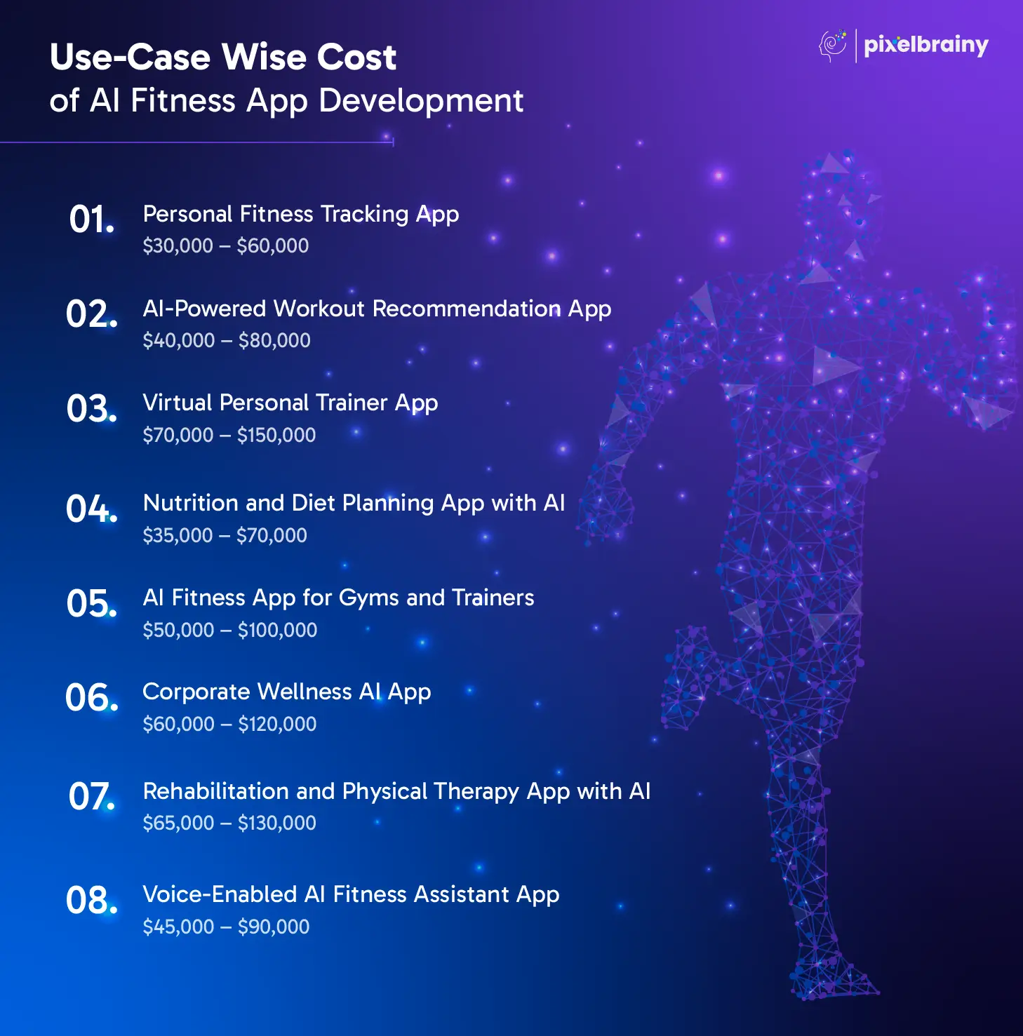 Below is a thorough breakdown of the most popular use cases for AI fitness apps and the relevant development costs: