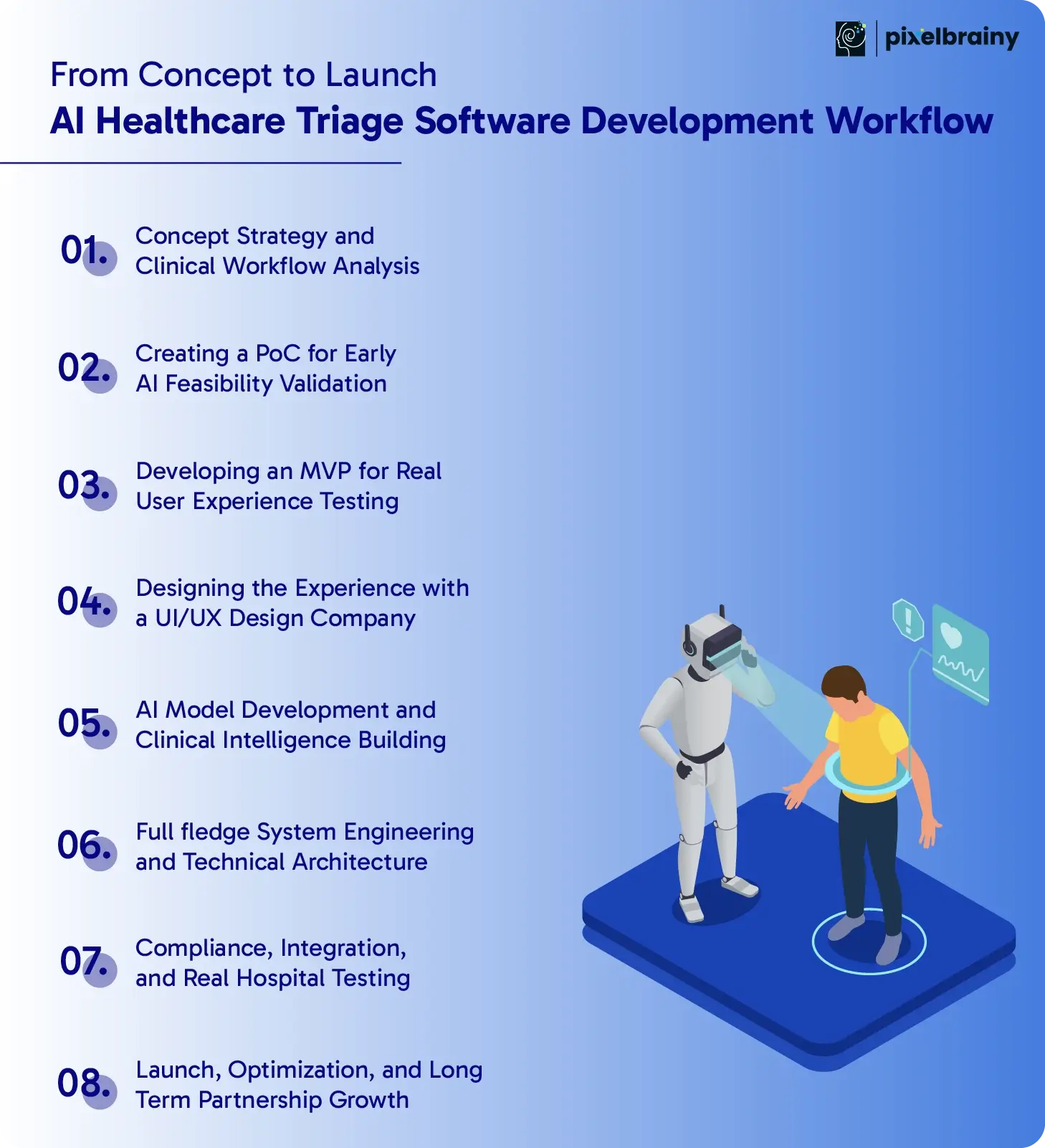 A structured workflow ensures AI triage software moves from idea to impact with clinical accuracy and long term reliability.