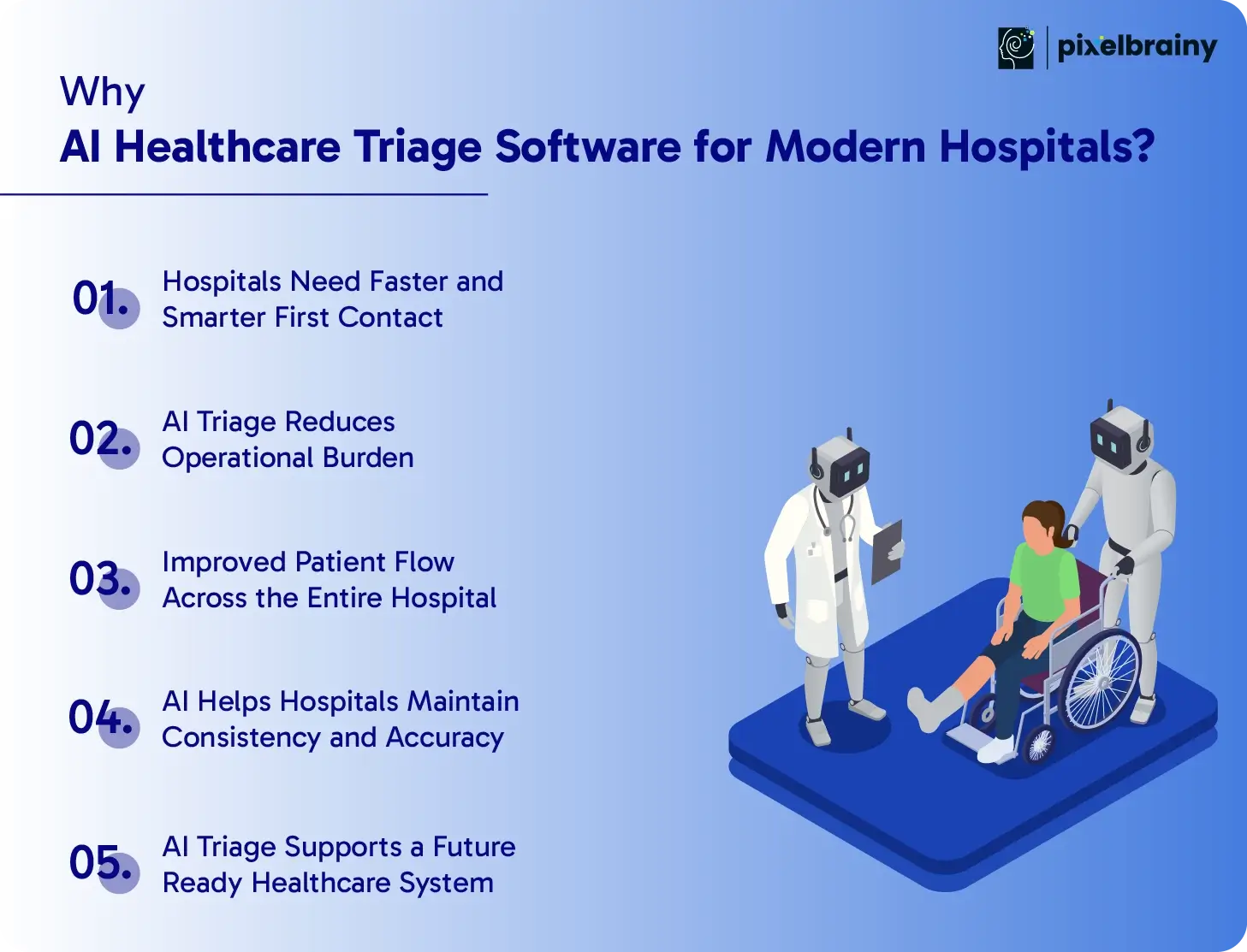 As digital health grows, hospitals must adapt. AI triage systems allow hospitals to scale without increasing staff at the same rate. This capability is essential for handling:
