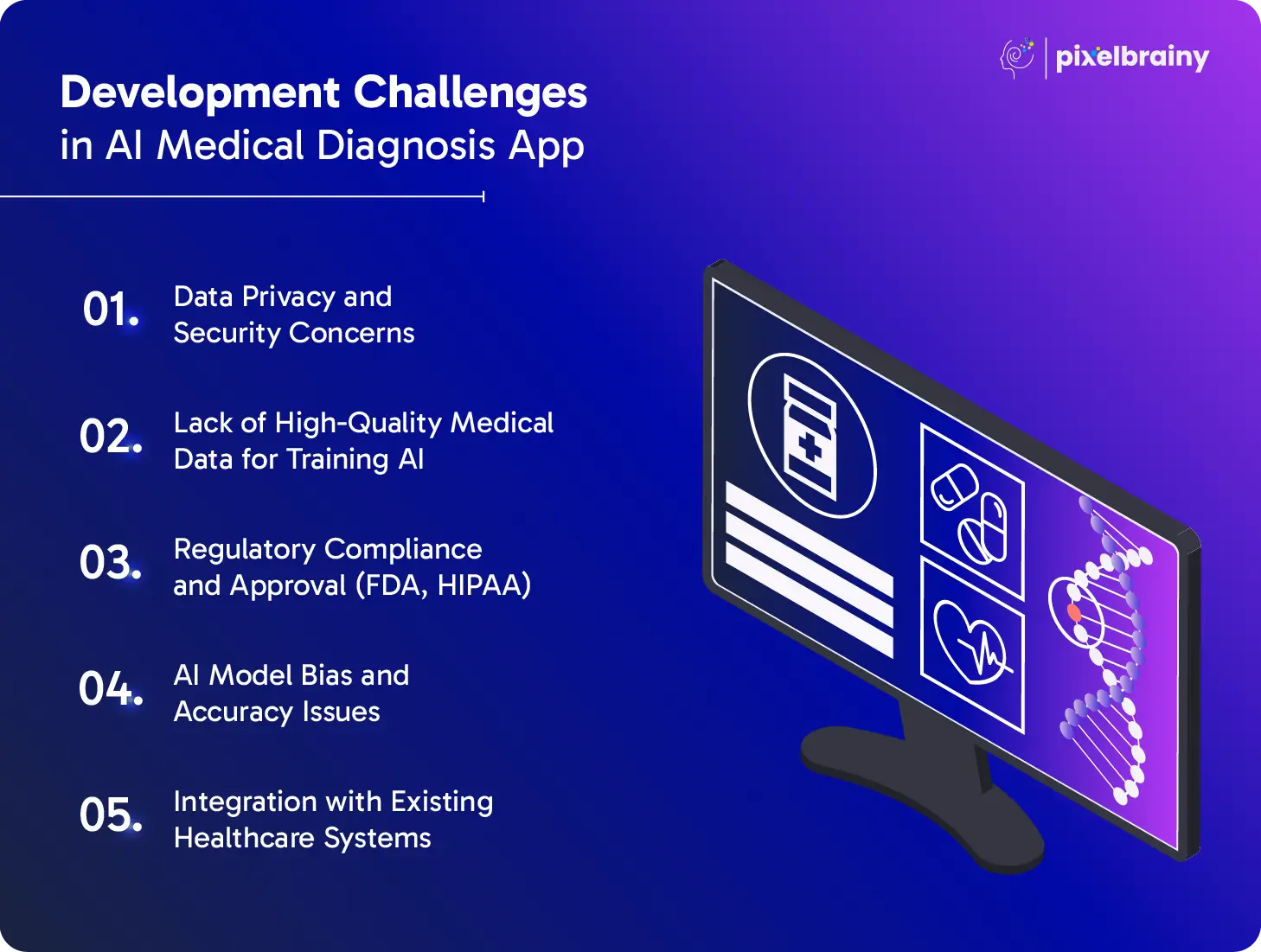 PixelBrainy is recognized as a leading AI development company that offers a skilled team of AI developers with expertise in AI medical diagnosis app development tailored to the healthcare industry. Our team excels in creating AI-powered solutions that leverage advanced algorithms and machine learning to offer real-time, accurate diagnostic tools.