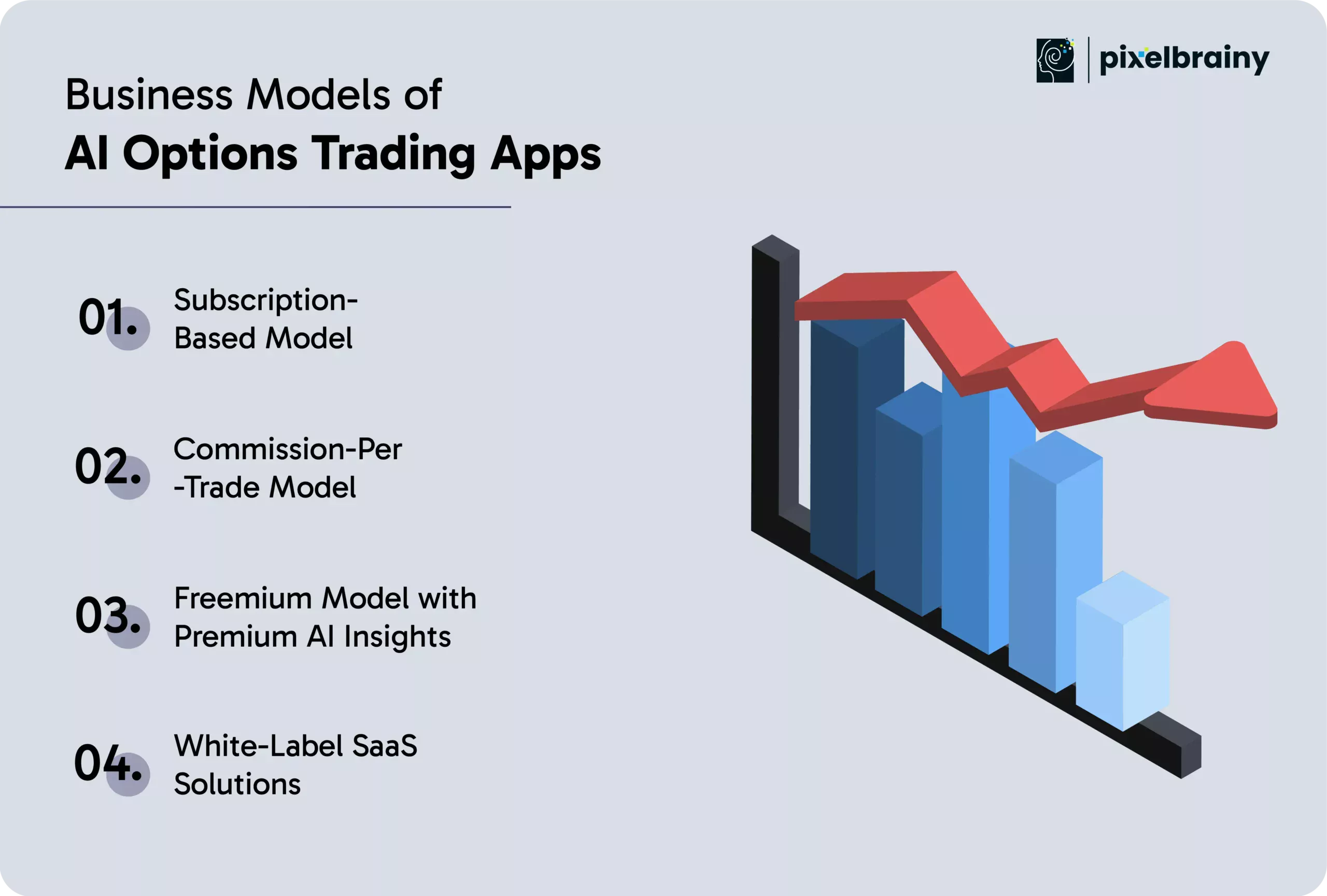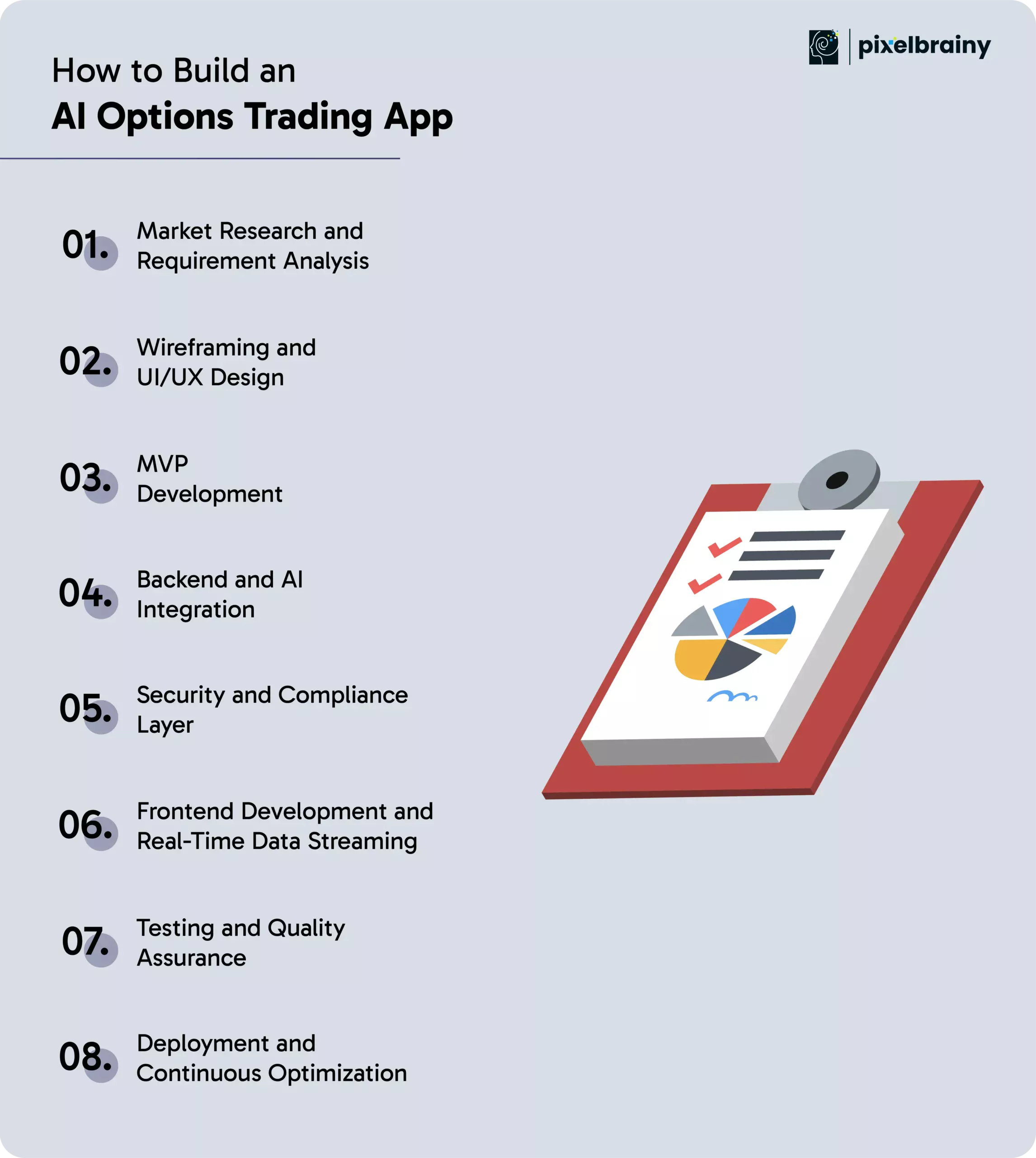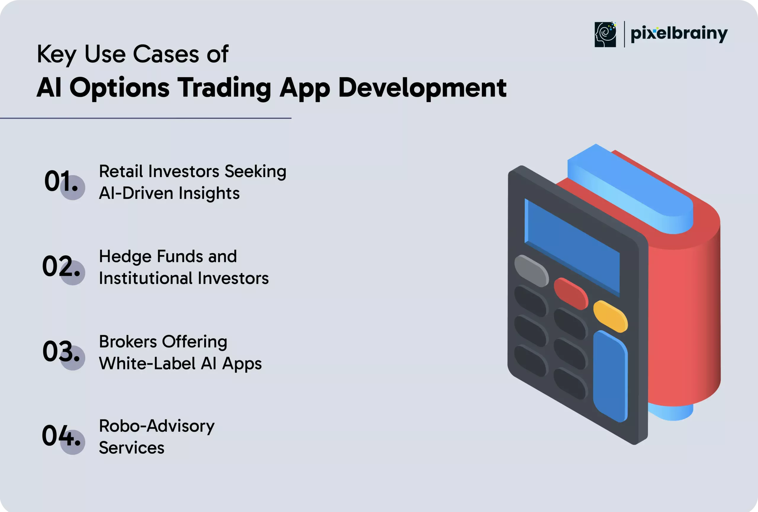 If you are serious about developing an AI options trading app that is built to outperform, PixelBrainy is the partner finance leaders trust to move from concept to execution and take trading platforms from innovative to unstoppable.