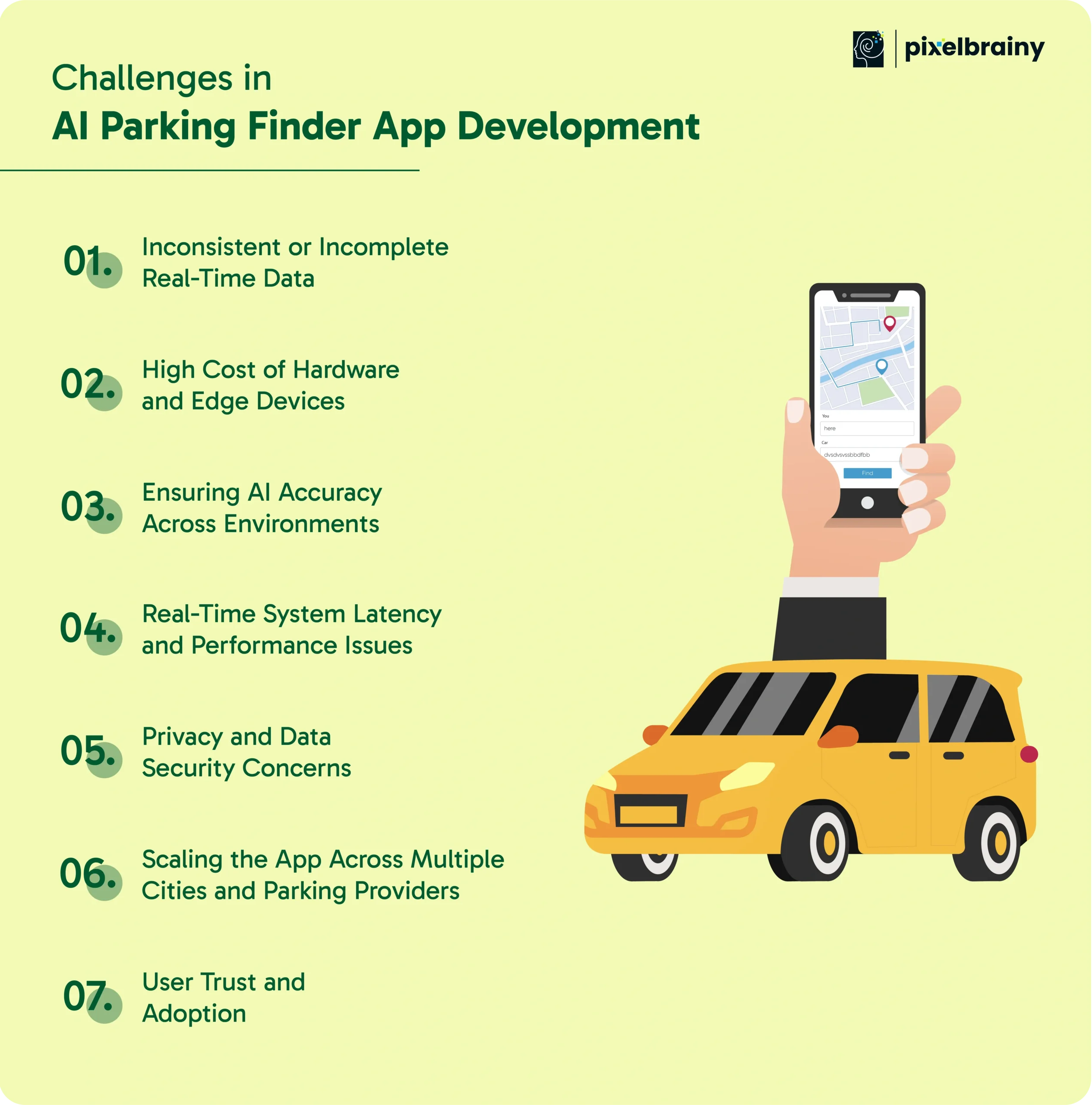 Understanding these obstacles and preparing strategic solutions is essential for a successful and scalable Parking Finder App Development using AI.
