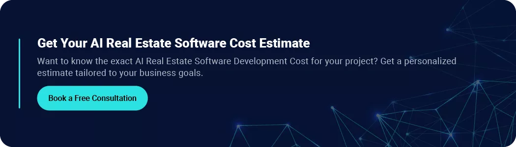 The cost to build AI real estate software typically ranges between $20,000 and $300,000+, depending on project complexity, AI capabilities, integrations, and scalability requirements. A startup MVP with basic AI features may cost $20,000 to $70,000, while enterprise level platforms with custom machine learning models, analytics systems, and advanced automation can exceed $300,000.