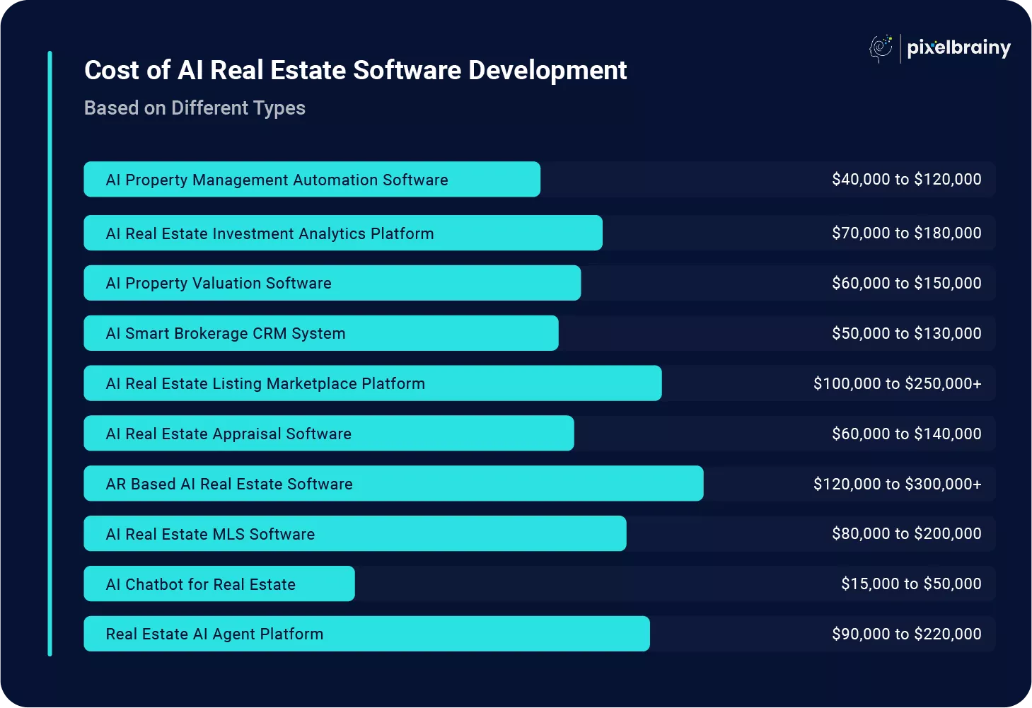 Below is a breakdown of different AI driven real estate software types and their estimated cost ranges in 2026.