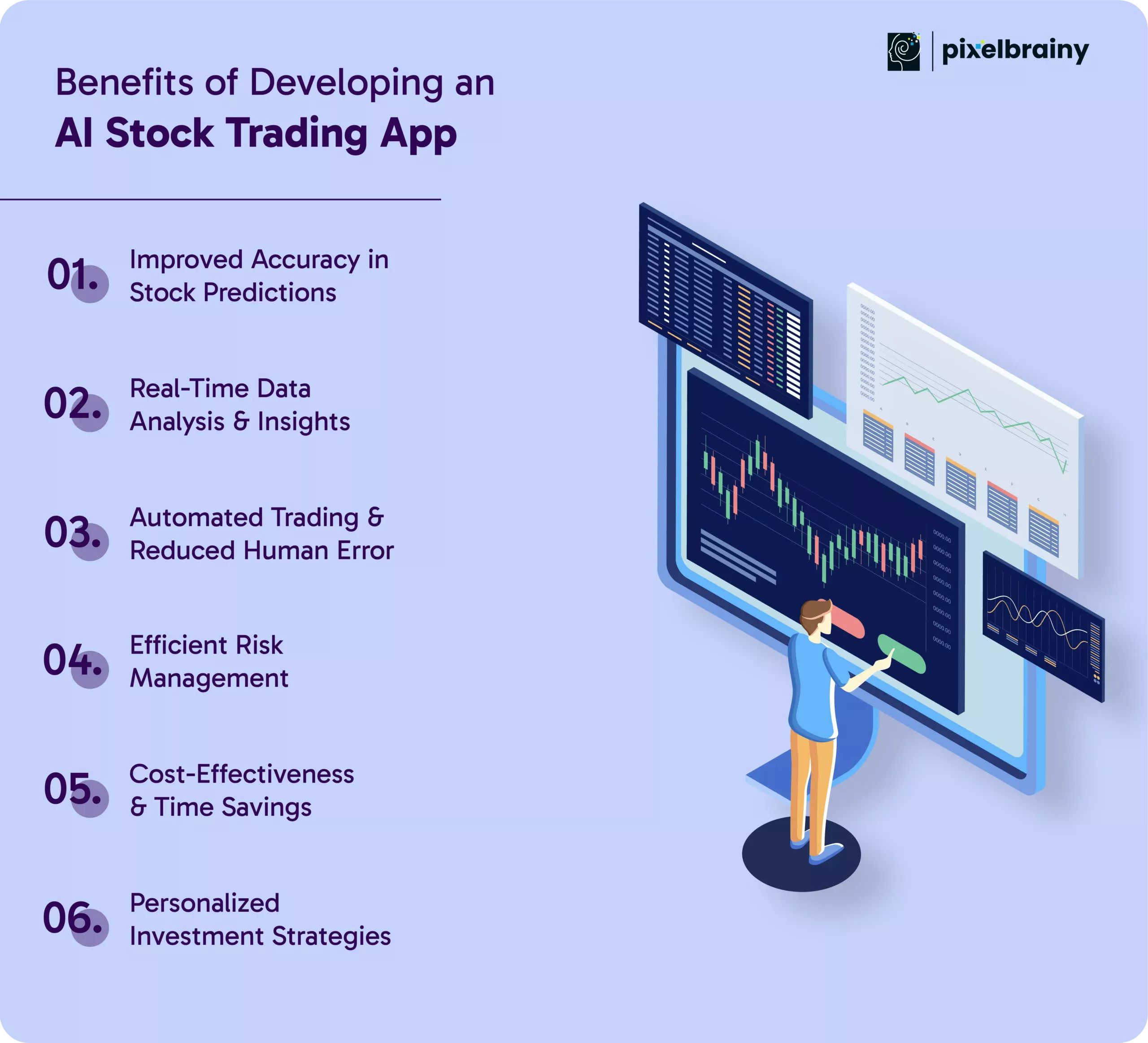 Key highlights to hire PixelBrainy for a stock trading app development implementing AI: