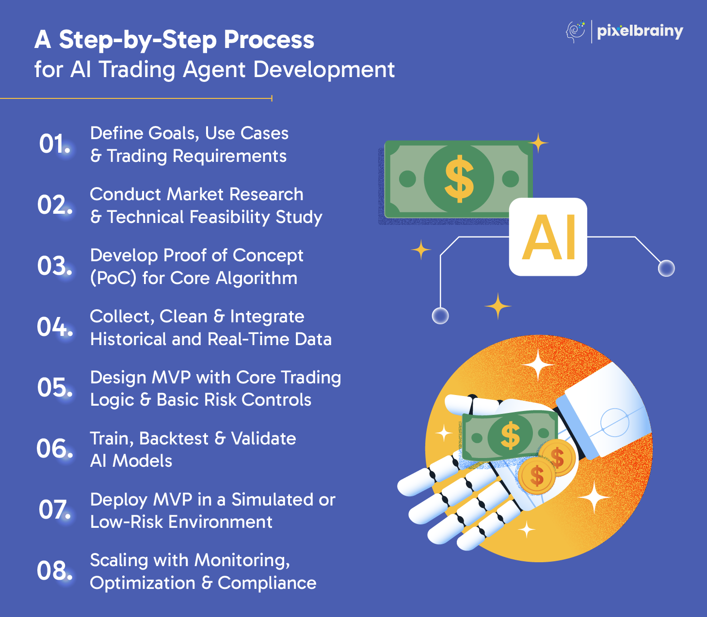 From PoC to enterprise AI trading agent development and deployment, PixelBrainy is your trusted AI trading agent development partner in 2025. Contact us now to get the best AI trading agent for stocks.