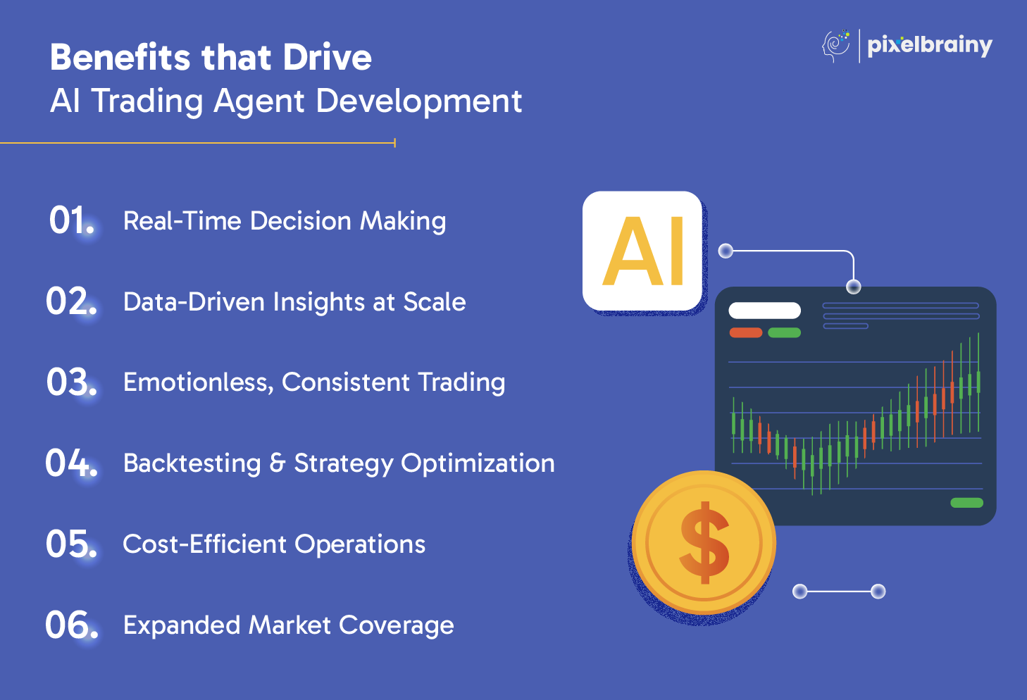 AI trading agent development in 2025 is not only a proactive approach but also a response to critical market demands. Financial institutions and traders are looking ahead to reliability, speed, and precision in decision-making. AI agents bridge that gap by executing trades without emotional bias, delivering real-time insights, and adapting constantly to market shifts.