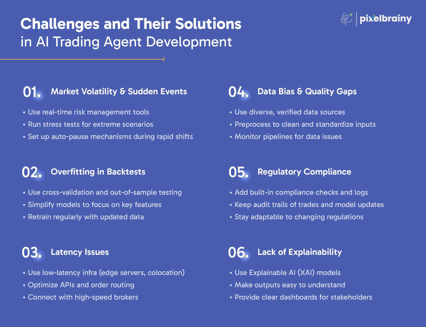 Of course, a custom AI trading agent development journey demands the selection of the right tools and models. But it’s not restricted to this edge only, as developers need to confront real-world hurdles that can derail compliance, performance, and trust.