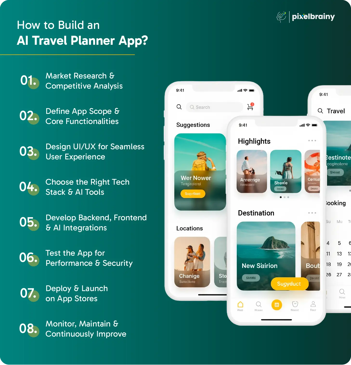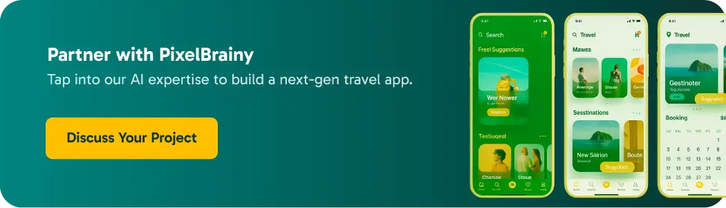 A reputed AI development company, PixelBrainy, specializing in building custom AI-powered travel solutions tailored to your unique business needs. We have experience in developing AI travel planner apps. Our team of AI specialists, experienced developers, and creative UI/UX designers is committed to delivering a flaw-free user experience, secure transactions, and smart recommendations.