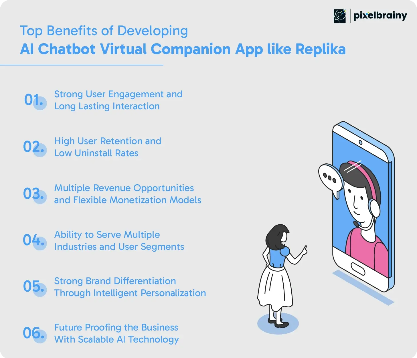 Creating an AI companion platform that mirrors the intelligence and emotional presence of Replika offers businesses a powerful opportunity to enter one of the fastest-growing segments in the AI industry.