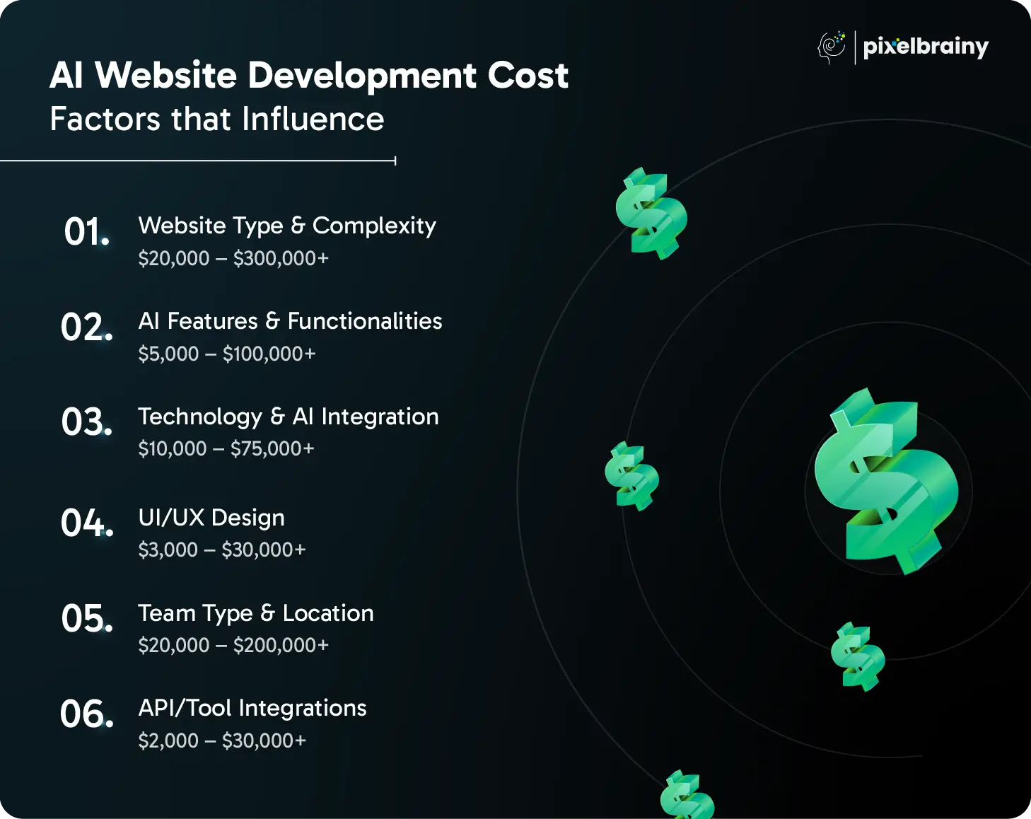 | Website Type & Complexity | Basic to Enterprise | $20,000 – $300,000+ |