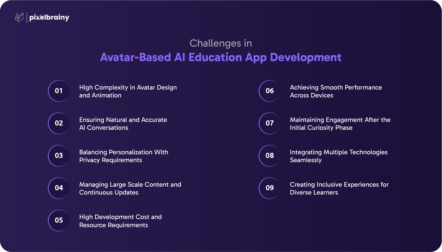 While Avatar Based AI Education App development opens the door to exciting learning possibilities, the journey is not without challenges. Building an intelligent avatar driven system requires a careful mix of technical precision, educational design, and user understanding. Below are the most common challenges and practical ways to overcome them.