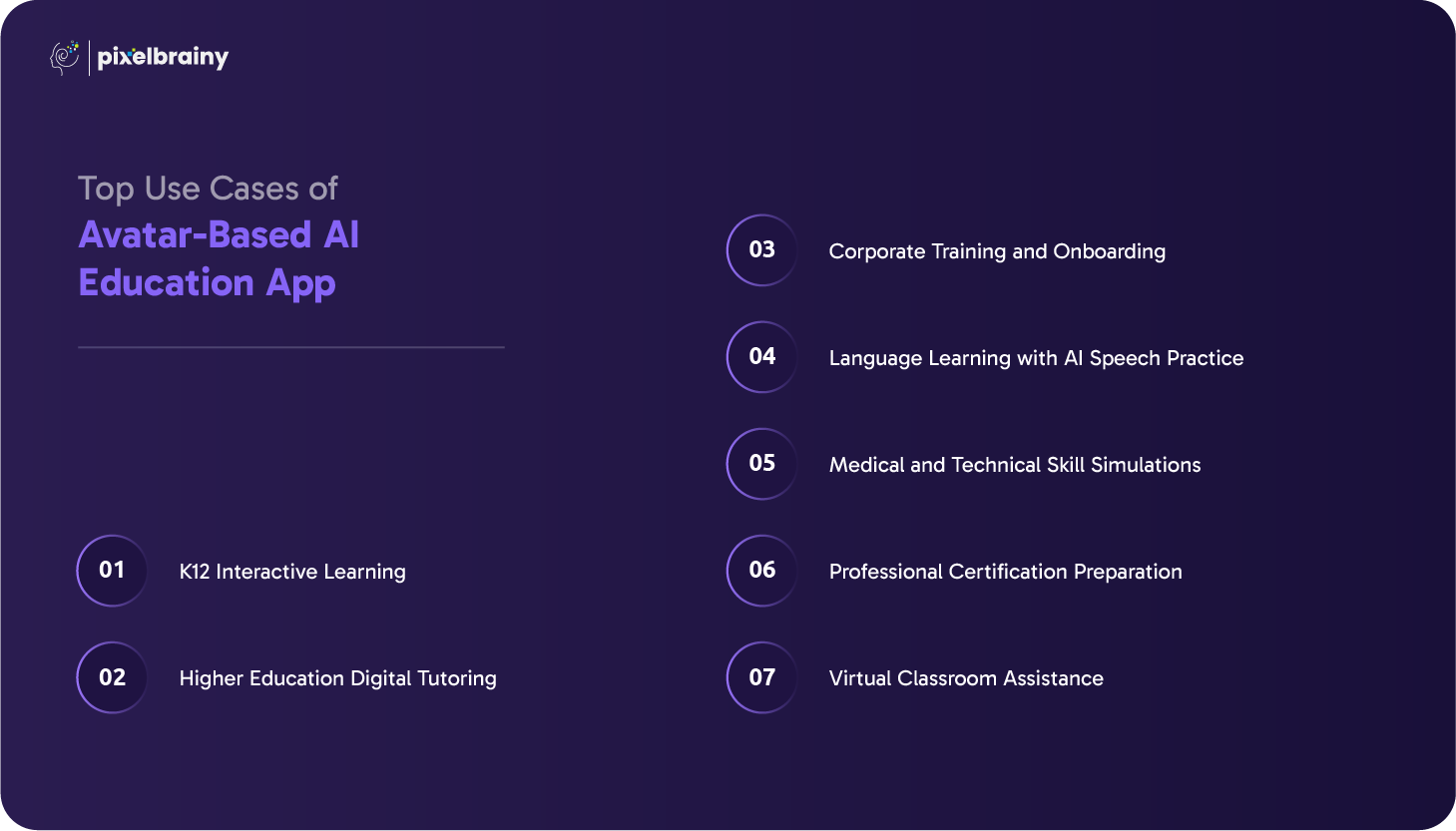 Here are the top real world use cases that show why many organizations choose to create an Avatar Based AI Education App.