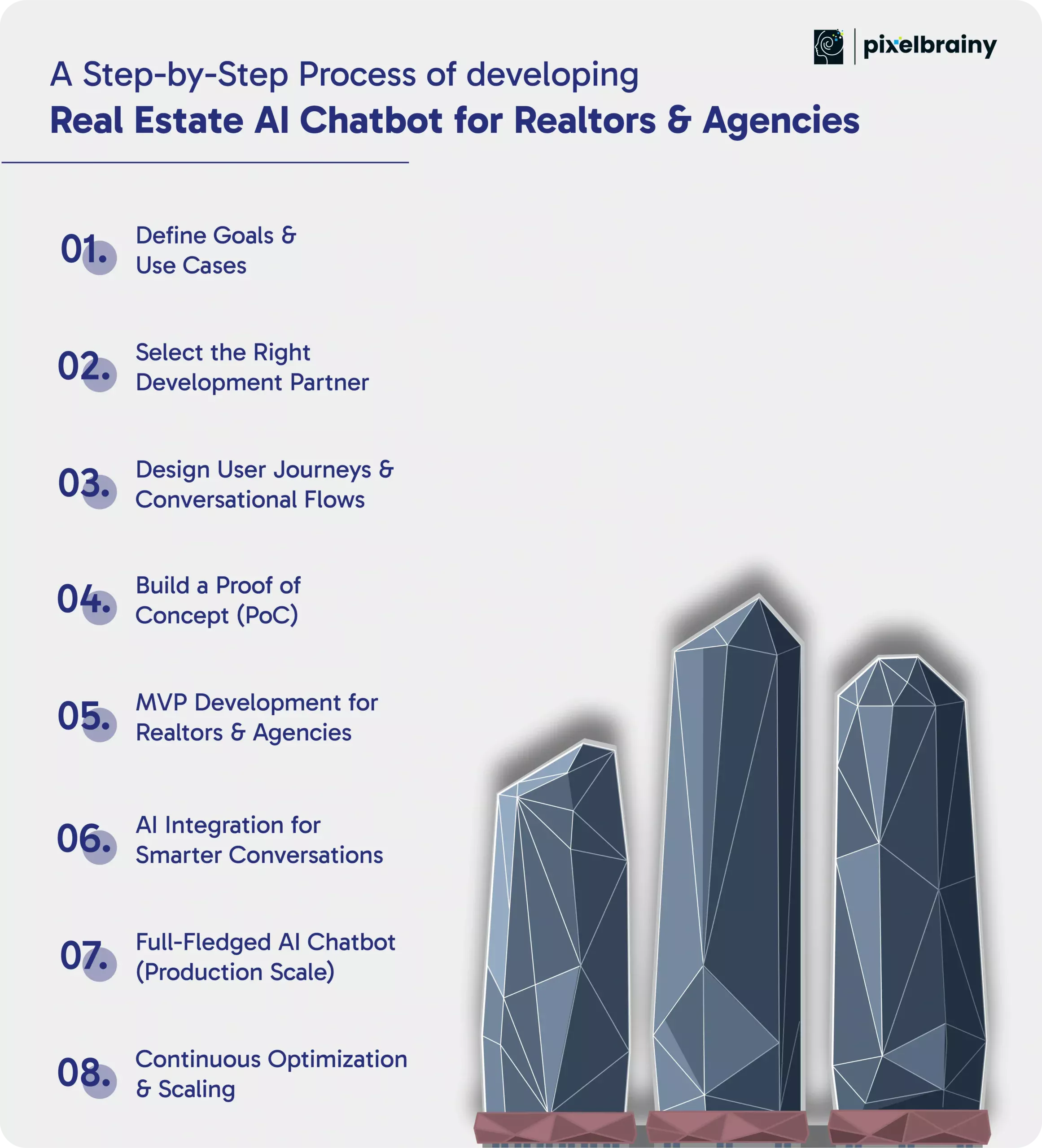 At PixelBrainy, we manage the entire lifecycle to build real estate AI chatbot development that drives measurable ROI: