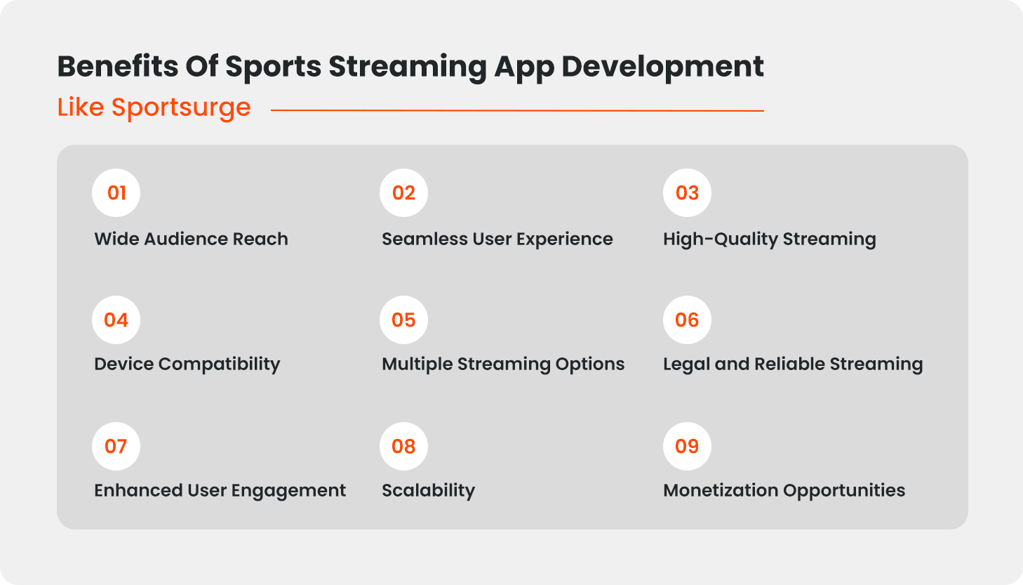 Its success can be attributed to its robust features and seamless user experience. By developing a sports streaming app like Sportsurge, you can capitalize on this growth and cater to the increasing demand for accessible and high-quality sports content.