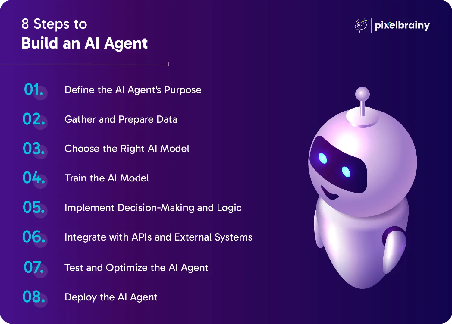 Businesses usually look for how to develop an AI agent. In this section, let’s learn it in 8 simple steps.