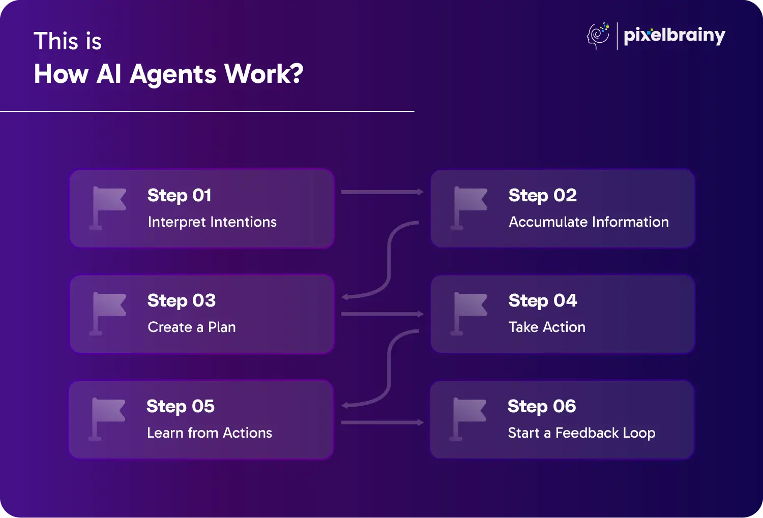 However, AI agents operate following a well-structured process that facilitates them to perform tasks autonomously and intelligently. But, with a new user, agents usually don't perform independently. They gain over time and excel, showing perfect understanding and proficiency.
