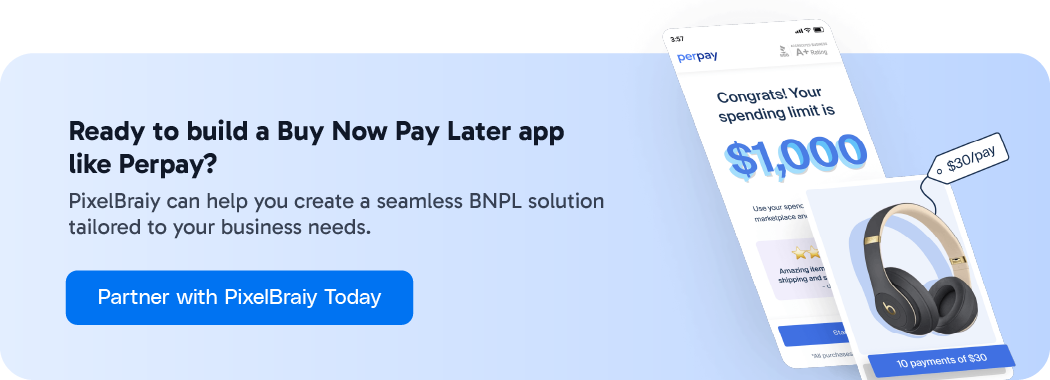 By harnessing PixelBrainy’s strengths, you can build a BNPL app like Perpay that can offer users the flexibility they want while attracting revenue via innovative monetization strategies.