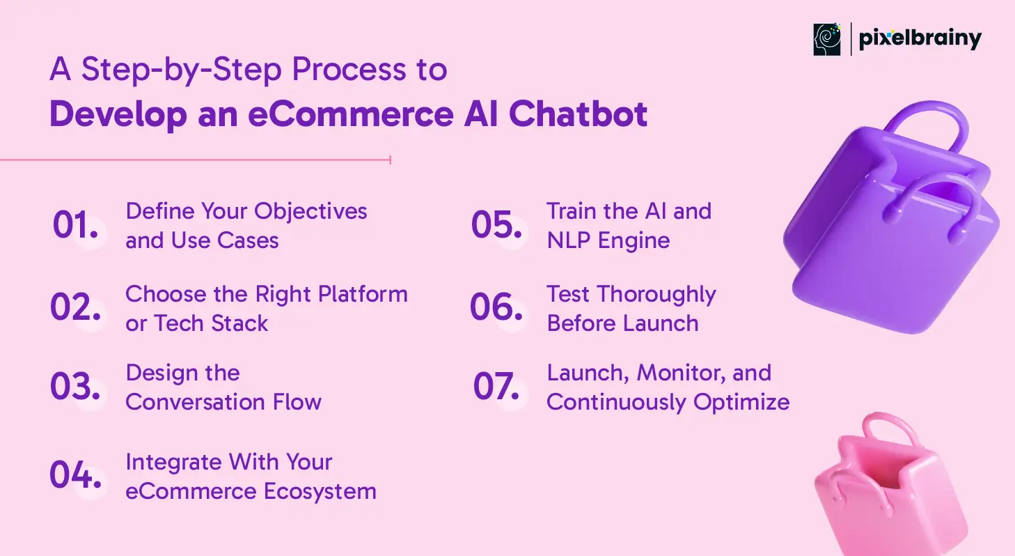 Below is a comprehensive, step-by-step guide to help you effectively build an AI chatbot for eCommerce, from planning through to optimization.