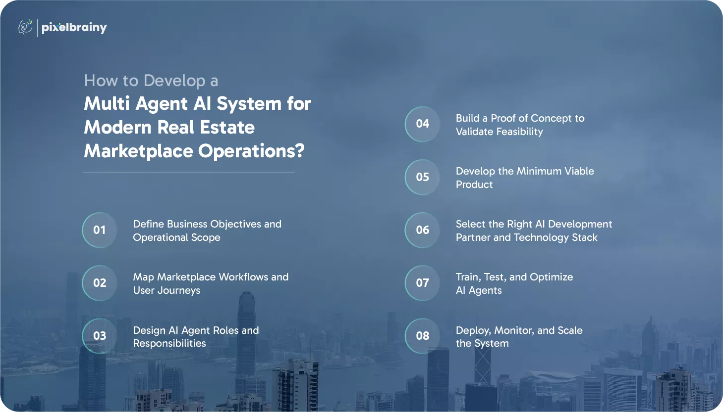 This structured approach to Multi Agent AI Software development for Modern Real Estate Marketplace Operations helps real estate businesses build intelligent, scalable, and future ready automation platforms.