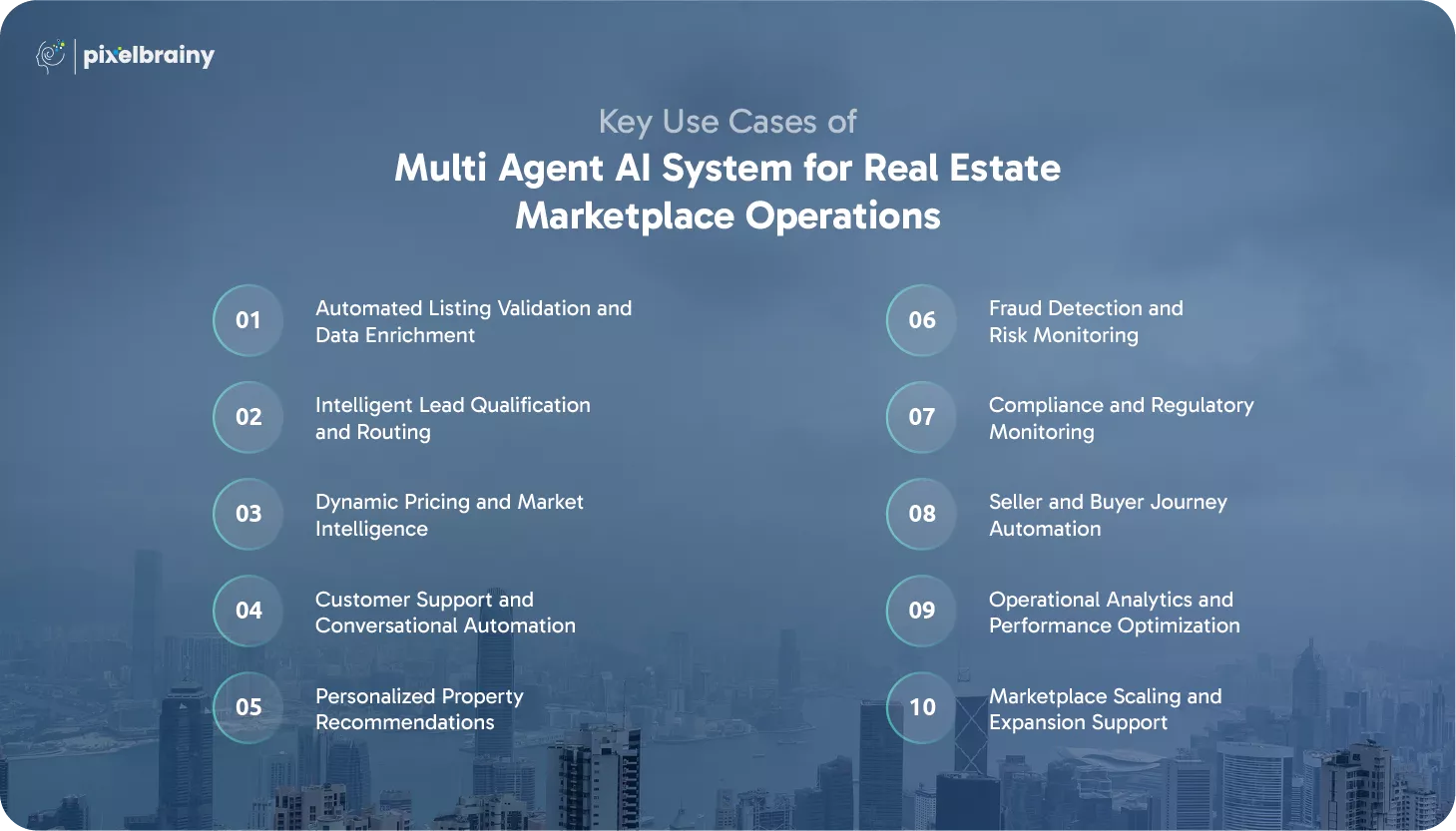 Below are the most impactful and practical use cases of multi agent AI systems across modern real estate marketplace operations.