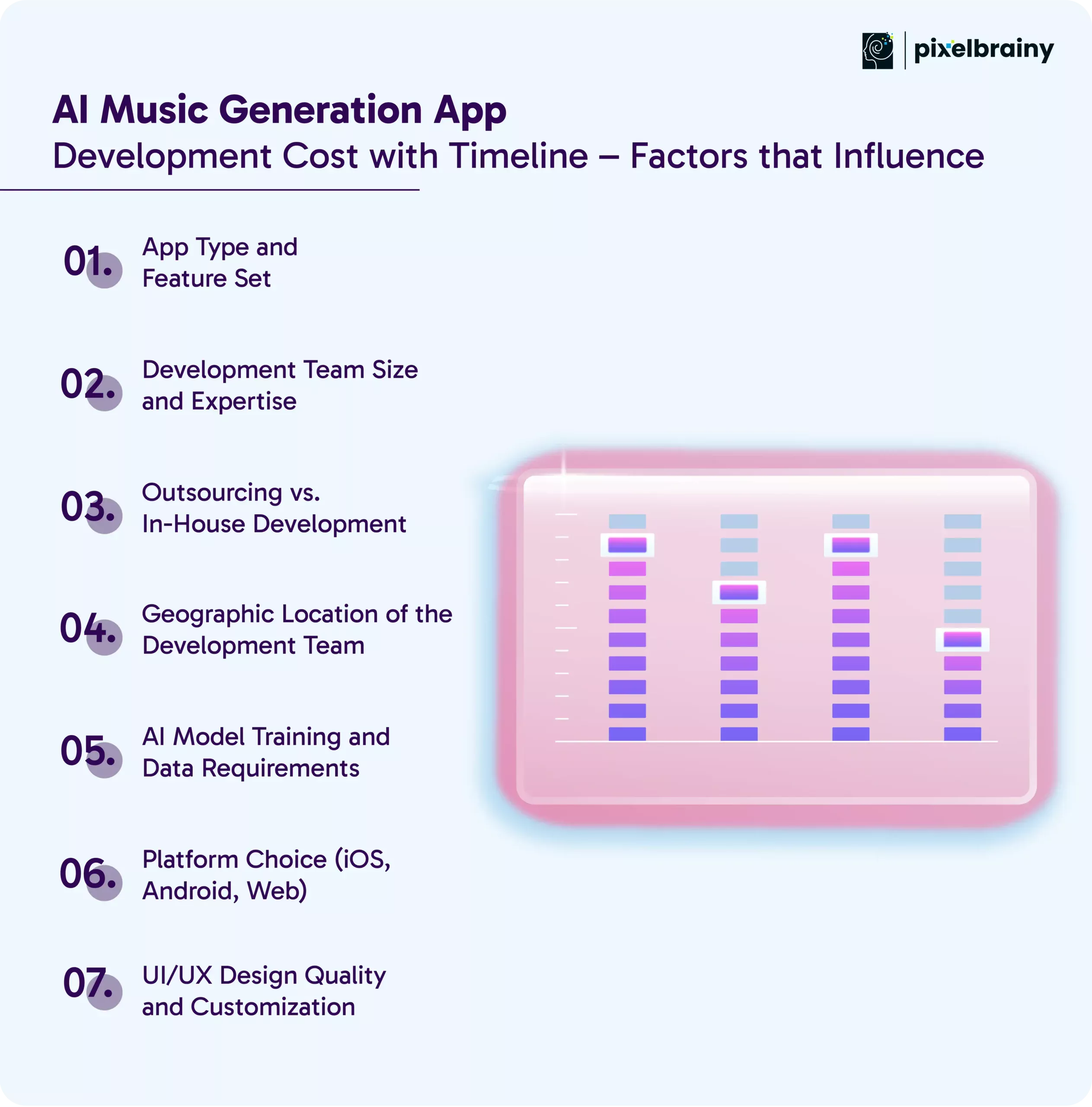 Unlike standard mobile apps, AI music generation platforms demand real-time processing, advanced machine learning models, custom UX design, and cloud infrastructure, all of which arrive with notable development and maintenance costs.