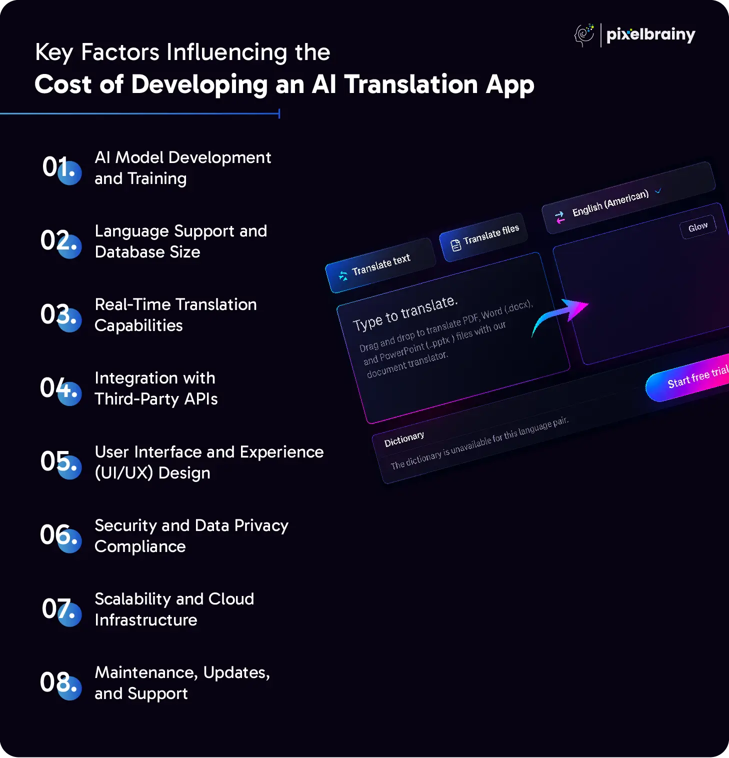 At PixelBrainy, we are skilled in AI translation app development, providing custom-built solutions with futuristic AI models, enterprise-grade security, and real-time processing. Our team ensures a scalable, high-accuracy, and cost-effective translation experience tailored to your business requirements.