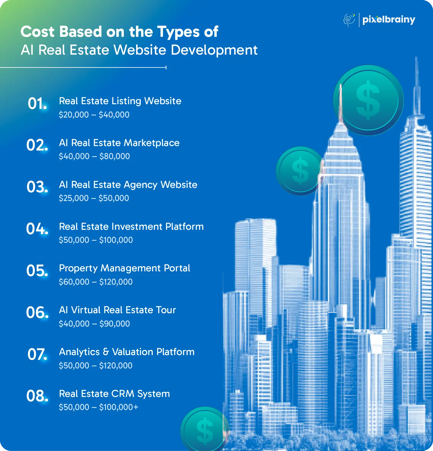 Here’s what you’re about to get in this costing guide of AI real estate website: