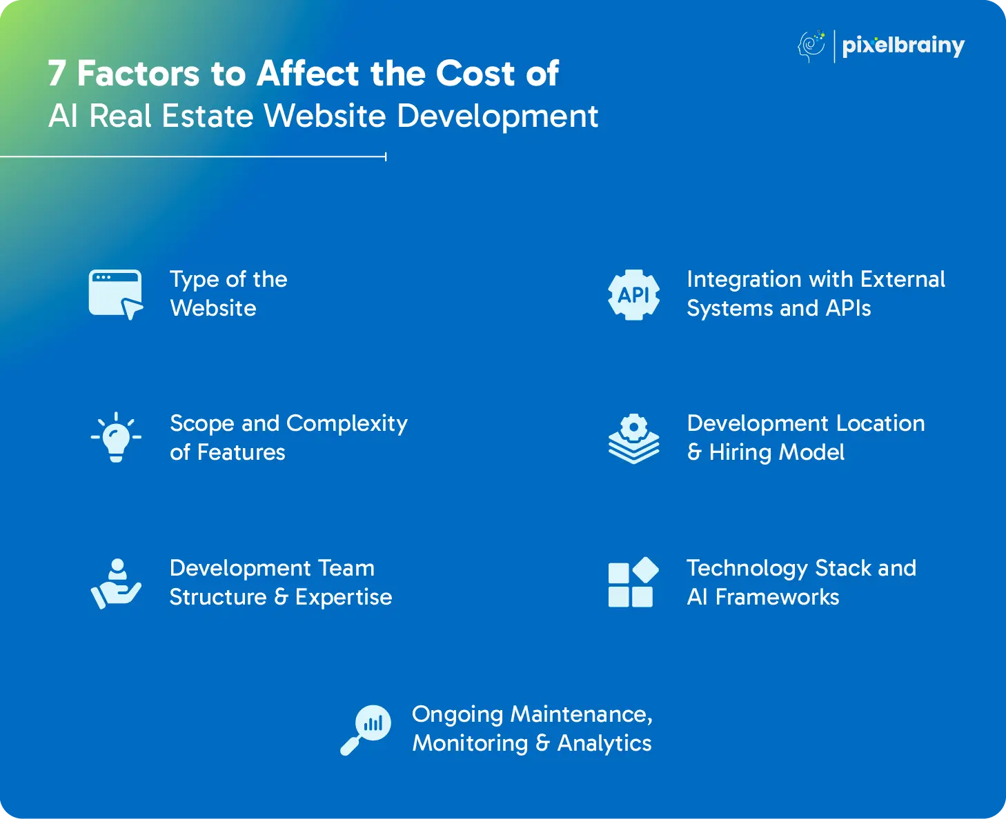 Below, we break down the 7 major elements that shape the cost to build a high-performing AI-powered real estate website.