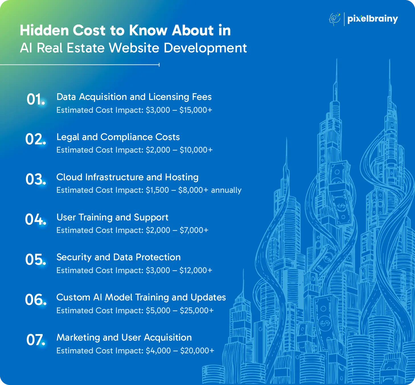Let’s dive deeper into some of the critical hidden costs that are commonly missed when calculating the AI real estate website development cost.