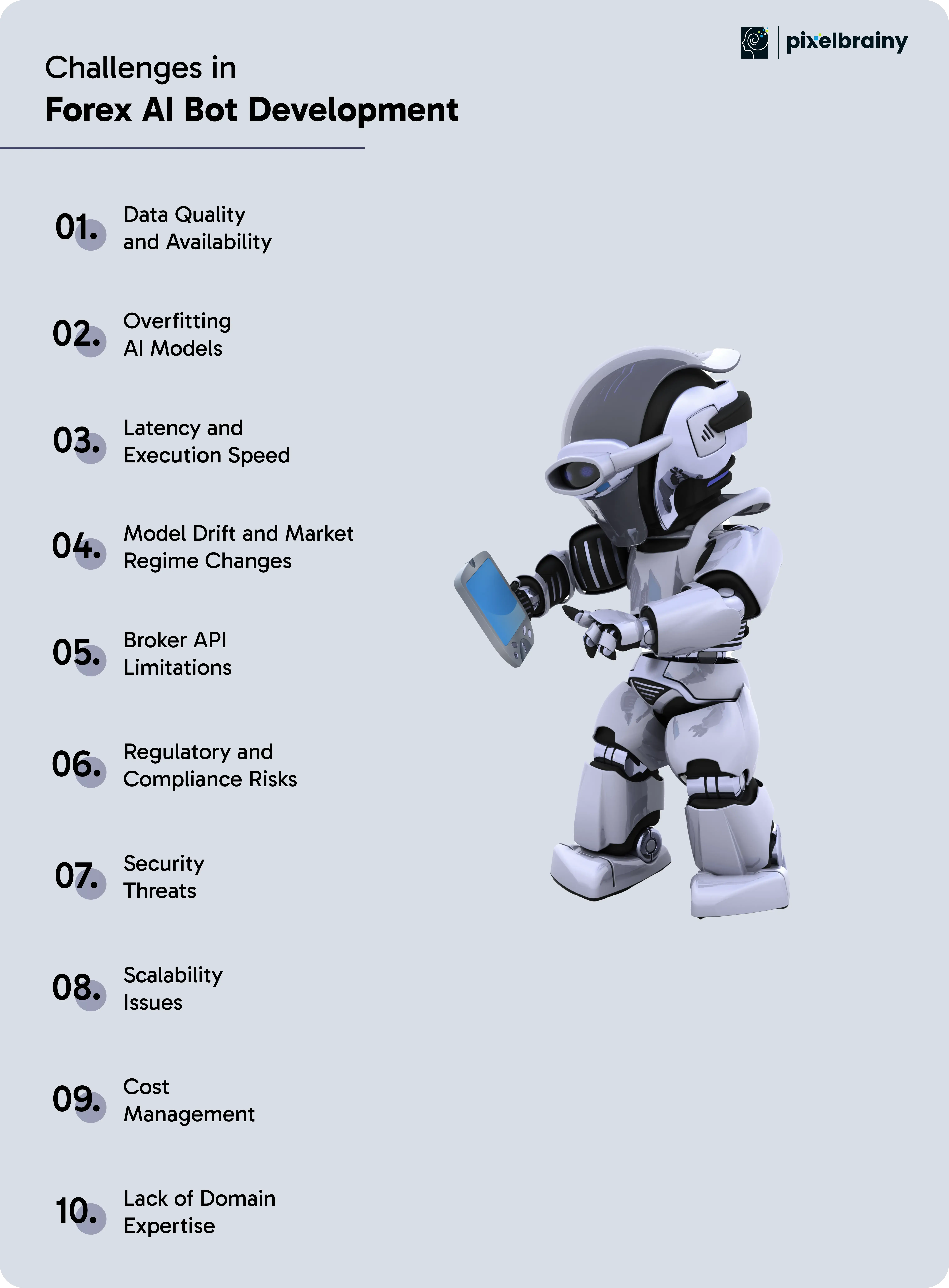 Here are the top challenges in AI Forex bot development and how to overcome them effectively:
