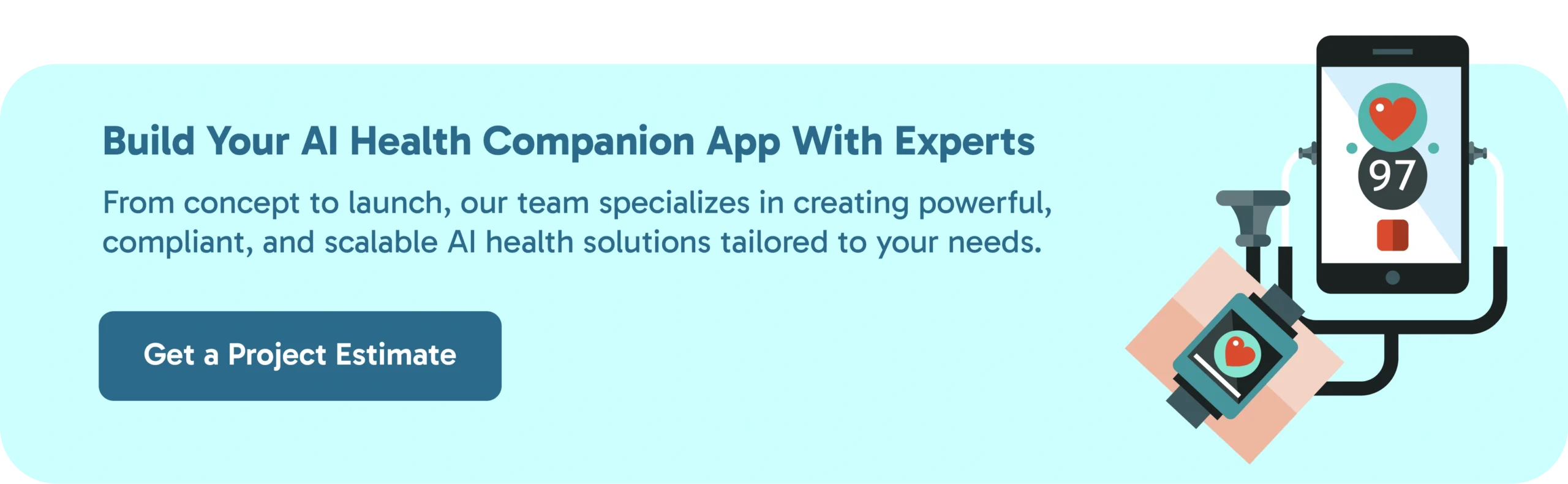In many regions, AI health companions are still early-stage. Businesses that move now gain a head start. As AI becomes the baseline expectation in healthcare, being a first mover gives you market recognition, a larger user base, and loyal customers before saturation. It also gives you more time to refine your models and differentiate your offering.