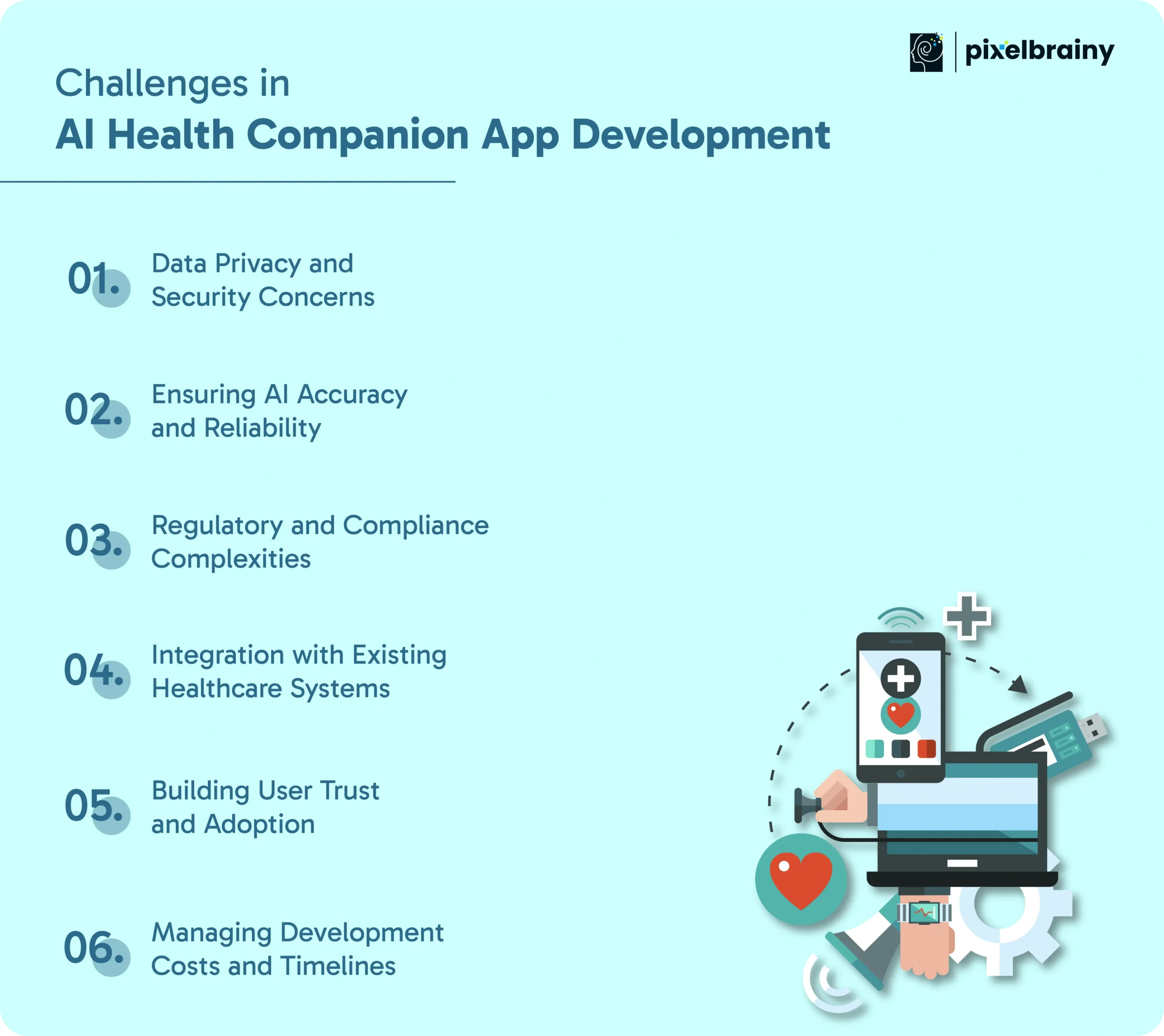 Below are the most common challenges faced during AI Health Companion App development and effective ways to resolve them: