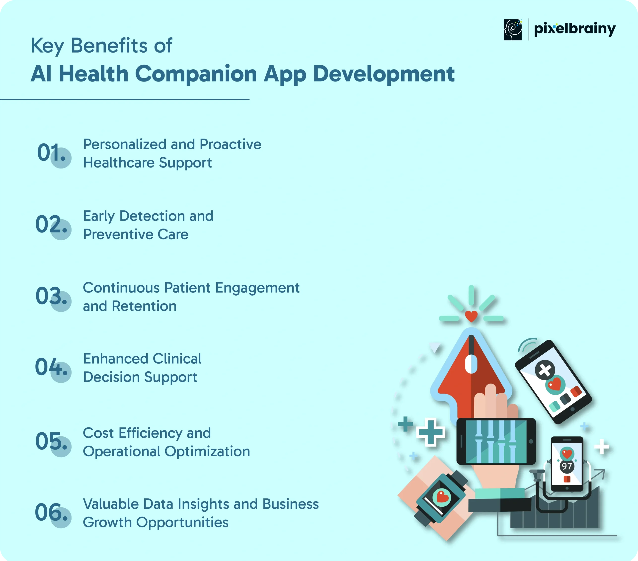 Incorporating these six benefits ensures your platform is not just another health companion app but a transformative, intelligent ecosystem that creates real value for users, healthcare providers, and your business.