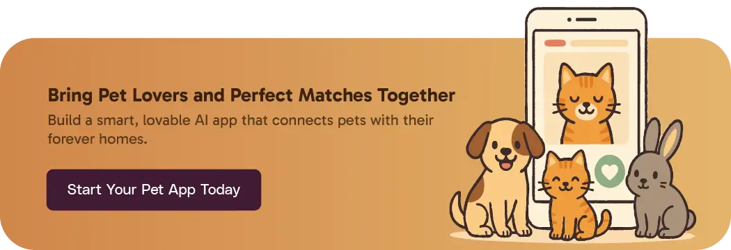 To build an AI pet matchmaking app creates valuable partnership opportunities with pet care brands, shelters, and other pet-related businesses. Shelters can benefit from increased visibility and streamlined operations, while brands can use the platform to promote their products to a targeted audience. The app can integrate pet care products, food, accessories, and services, offering adopters a one-stop solution. Such partnerships not only increase revenue but also enhance the overall user experience by providing a holistic solution for pet adoption and care.