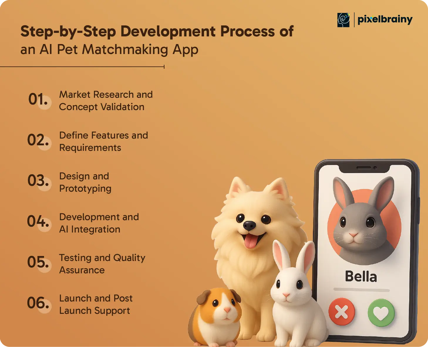 To successfully develop an AI pet matchmaking app, it’s essential to follow a structured process. This ensures that the app meets user needs, incorporates advanced technologies, and functions seamlessly. Below is a step-by-step guide to ensure your app development project progresses smoothly.