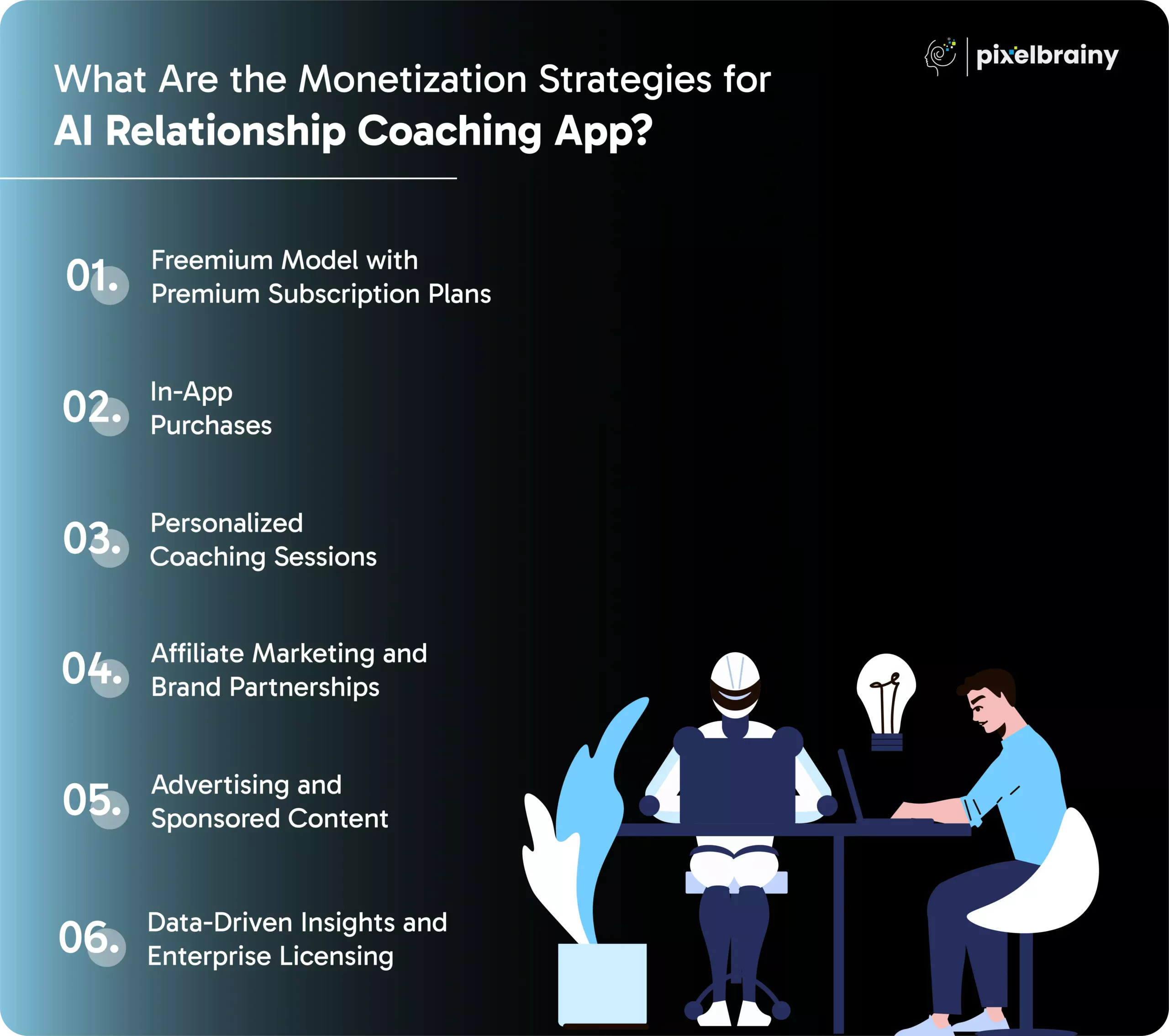 Here are some of the most effective ways to monetize an AI-powered relationship advice and coaching app: