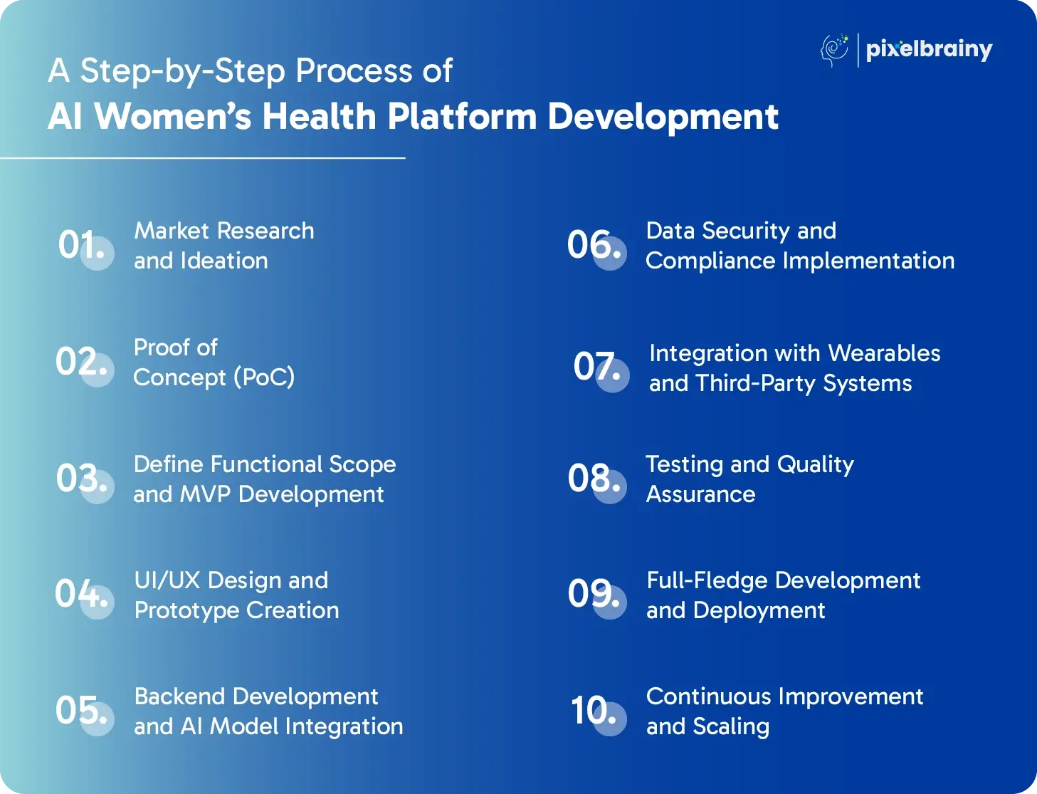 Below is a comprehensive guide outlining each step in the journey of developing AI Women’s Health Platform, from idea to implementation.